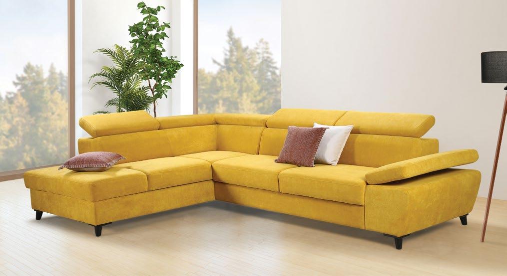 Kotna sedežna CINDY, vzmeteno 216x287cm, leva ali desna postavitev, ležišče, predal, 3x nastavljiv vzglavnik, nastavljiv rokonaslon, blago MERCURY temno siva, zelena ali rumena