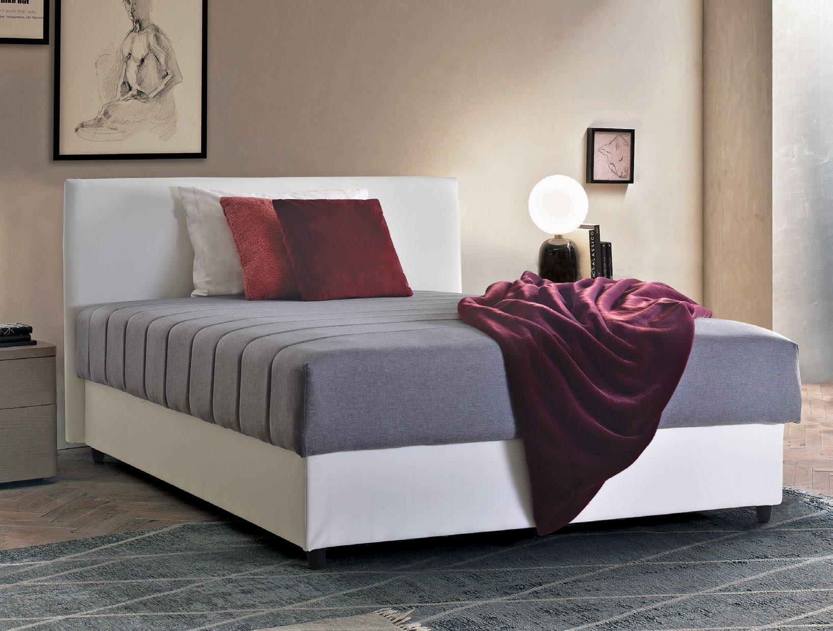 Francoska postelja IVA, 150x200cm dvižno ležišče, predal, um.usnje bela/blago siva