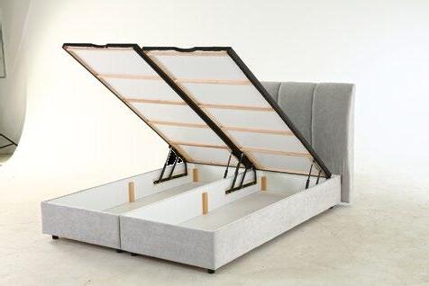 Celotna postelja HIT, 160x200cm dvižno dno, predal, blago siva vzmetnica bonel vzmetenje