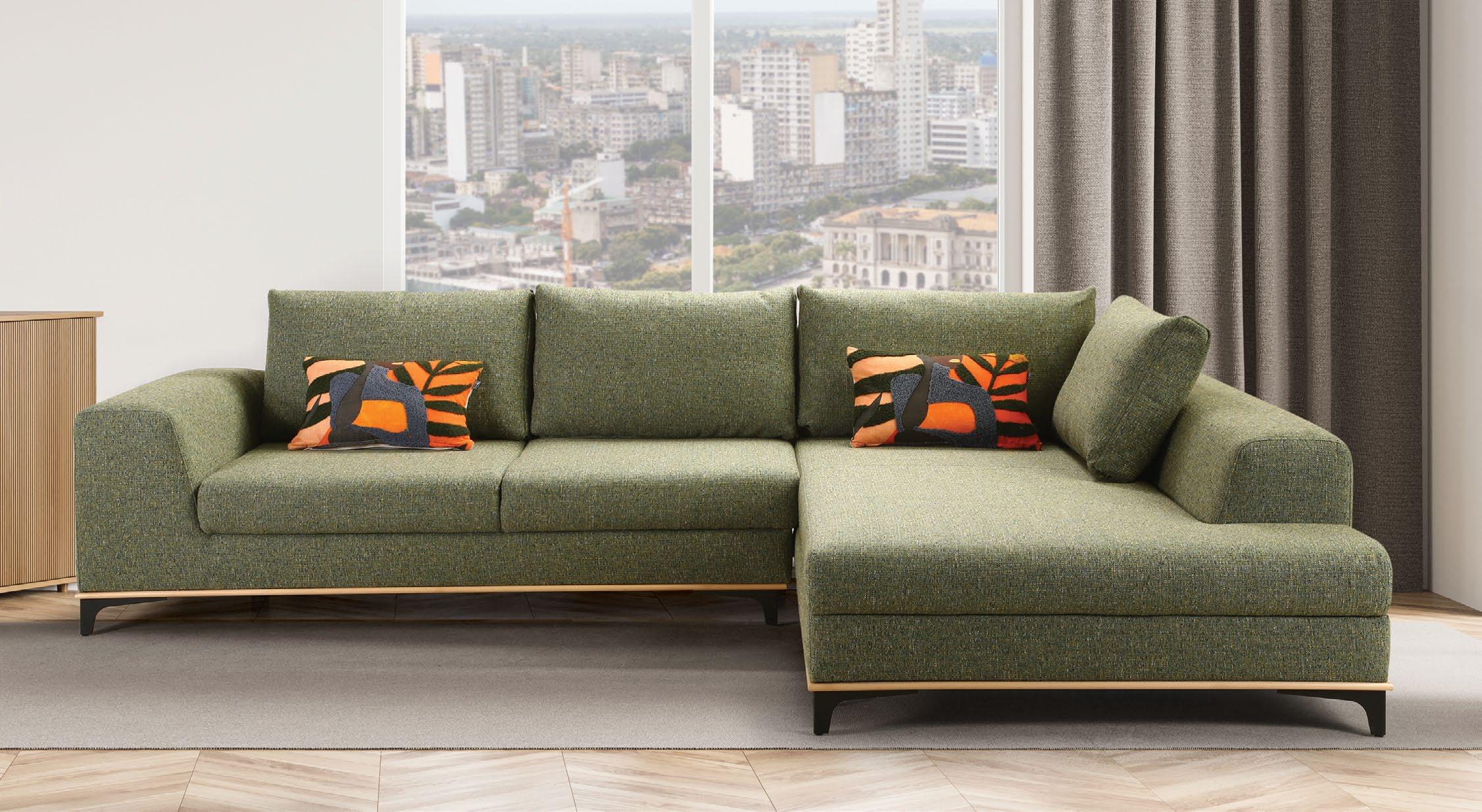 Kotna garnitura BOLOGNA, vzmeteno, 314x211cm, leva ali desna postavitev, ležišče, predal, blago zelena ali siva. Odprodaja zaloge!