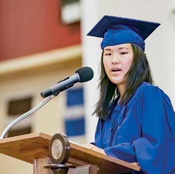 year, a two-year program or a four-year program, some may be heading straight to work, some of you may be taking a year to travel, or some might not be sure of what your next step is. Whatever your path may be, don’t close yourself off from learning. Reading or writing something freely, visiting a new place you’ve never been to before, experiencing new cultures and customs, taking a course on anything that you want — art, music. The list goes on — the resources to expand our minds are right at our fingertips. Wherever and whenever you want. OK, I’ve rambled on long enough … but I need to share this. When Mr. Lazzaro first asked me to come and speak today, I almost said no. I hesitated because I wasn’t sure what I would say to you all. I didn’t think I had any mind-blowing advice. But I said yes anyway because I realized that all I could do is share my personal experience and be honest with you all, and to do something that scared me, because this really scares me. It’s hard to know what tomorrow looks like, but as you take the steps into this new chapter … Have an open mind. You might think you know everything now but be willing to relearn things, don’t be afraid to be wrong, or ask questions, or to not get it right the first time around. Surround yourself with people who lift you up, and who will inspire and support you during those moments of unclarity. Practice gratitude daily. It allows even more goodness to enter our lives. Set goals for yourself, but don’t get thrown off if things change. The path may not always be straight, but if it’s something that you love, stay the course. Believe in yourself, you got this!
