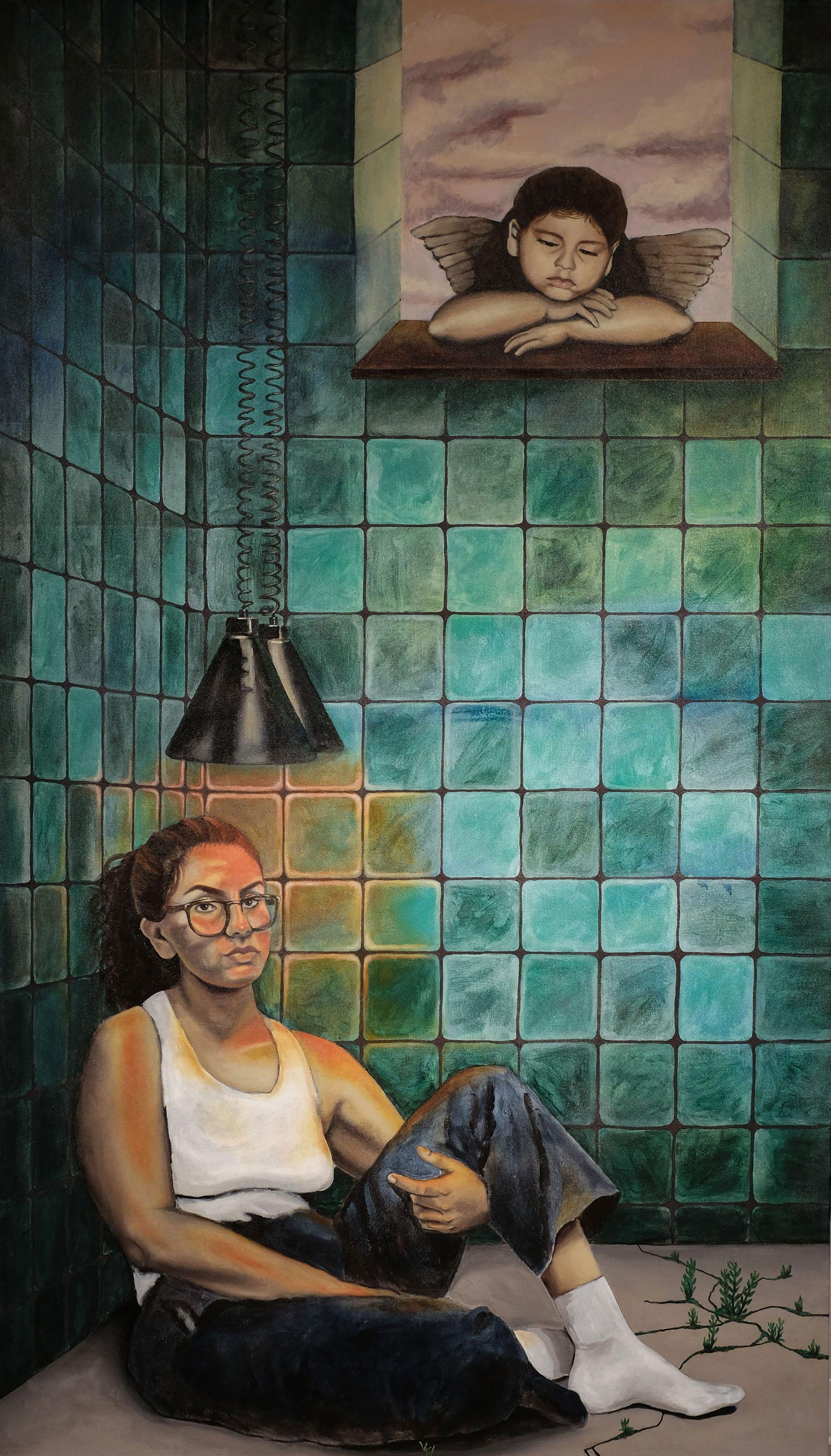 The works included in this exhibition concerns itself with reincarnation, spirituality and coexisting universes. Derived from a larger body of work titled, “Does Anyone Know if Any of This is Real?”, Guerra voices personal experiences and questions within these subject matters. The pieces incorporate Guerra’s double in ambiguous settings, where one opens a dialogue about spirituality, and the other about reincarnation. The works are also seen as windows into different realities from which the doubles look out from – looking back into the viewer’s eyes. This proposes that the figure notices us just as much as we notice them. “Does Anyone Know if Any of This is Real?” encourages viewers to open their minds, perceive the world around them with a little extra curiosity, and not be afraid to ask questions regarding this reality. We are the universe experiencing ourselves. We are all interconnected.