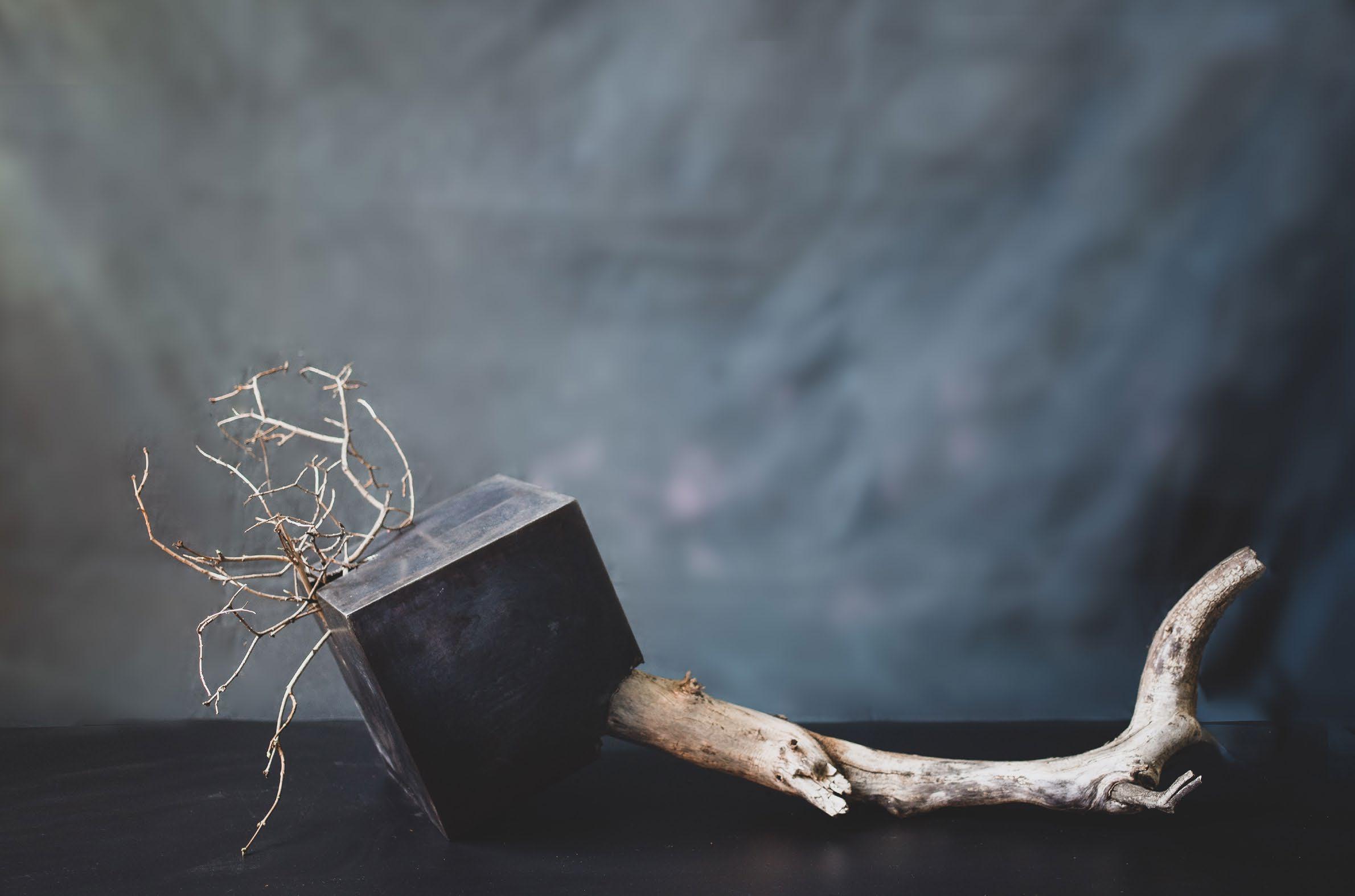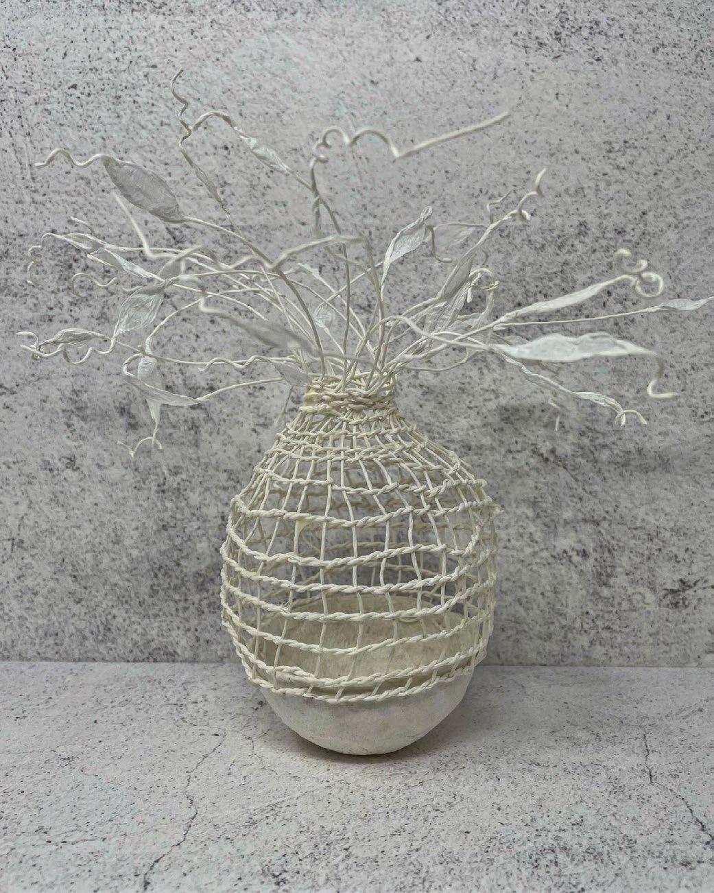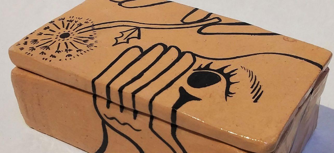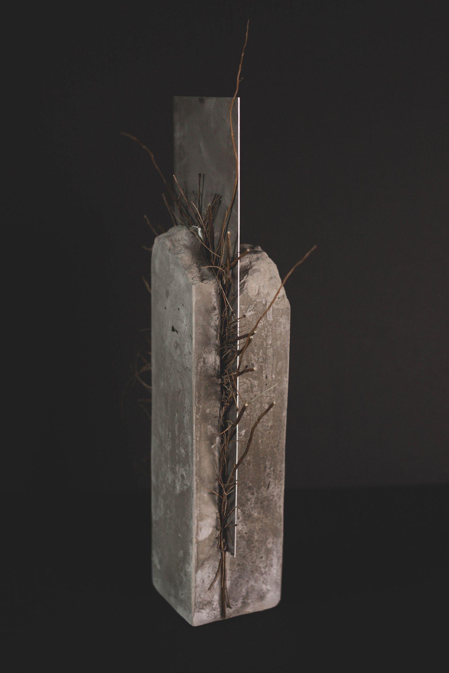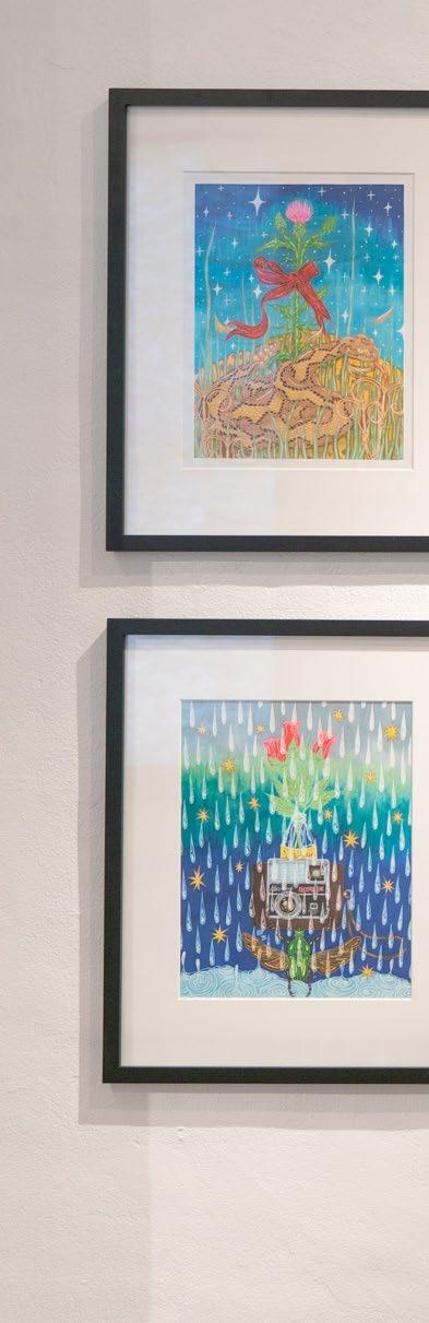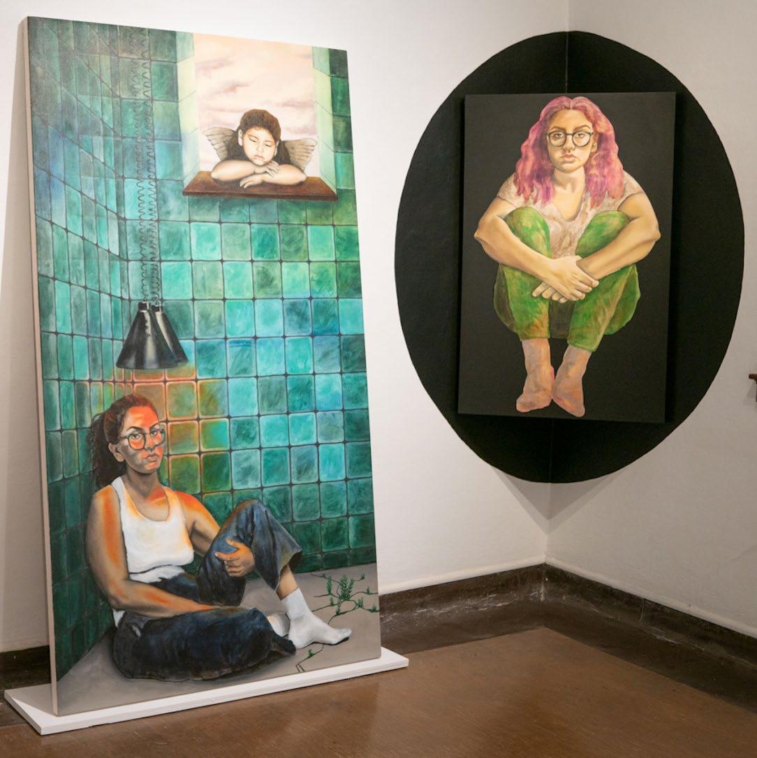 Rocío’s work is very personal, her work represents inner struggles and different versions of herself. She categorizes her work into three kinds. The first is “the blocks” which are a kind of a diary, each “block” represents an emotion, a memory, or a feeling, and these blocks combined form who she is. Then we have the “creatures”, which she considers self-portraits, they represent her past and her childhood growing up in a poor neighborhood in Mexico. Plants are a constant inspiration, twigs are weak and break easily, but roots can be very strong and can break concrete foundations, a contrast that she often uses in her pieces. Lately, Rocío has been experimenting with digital photography selfportraits where she has become her own muse. She says “No one will see me the way I see myself”. Rocío hopes to inspire others to find beauty in dark places with her art.