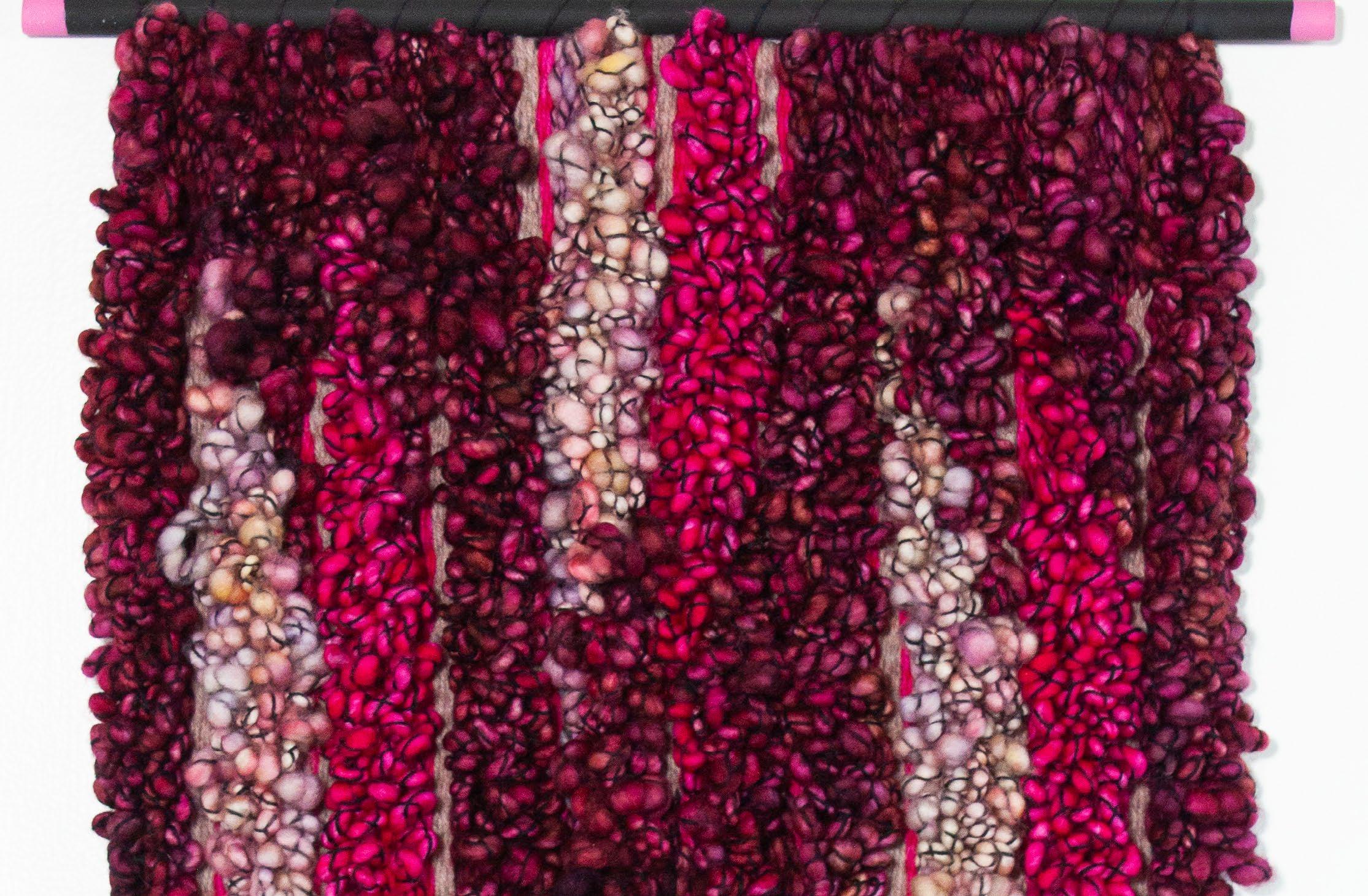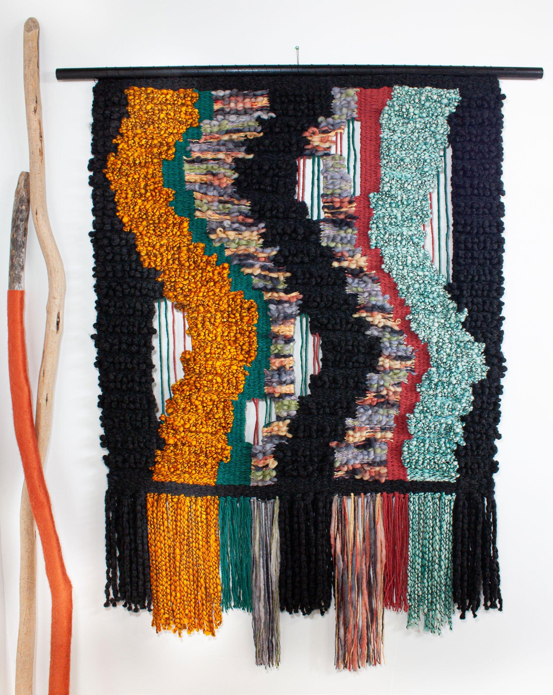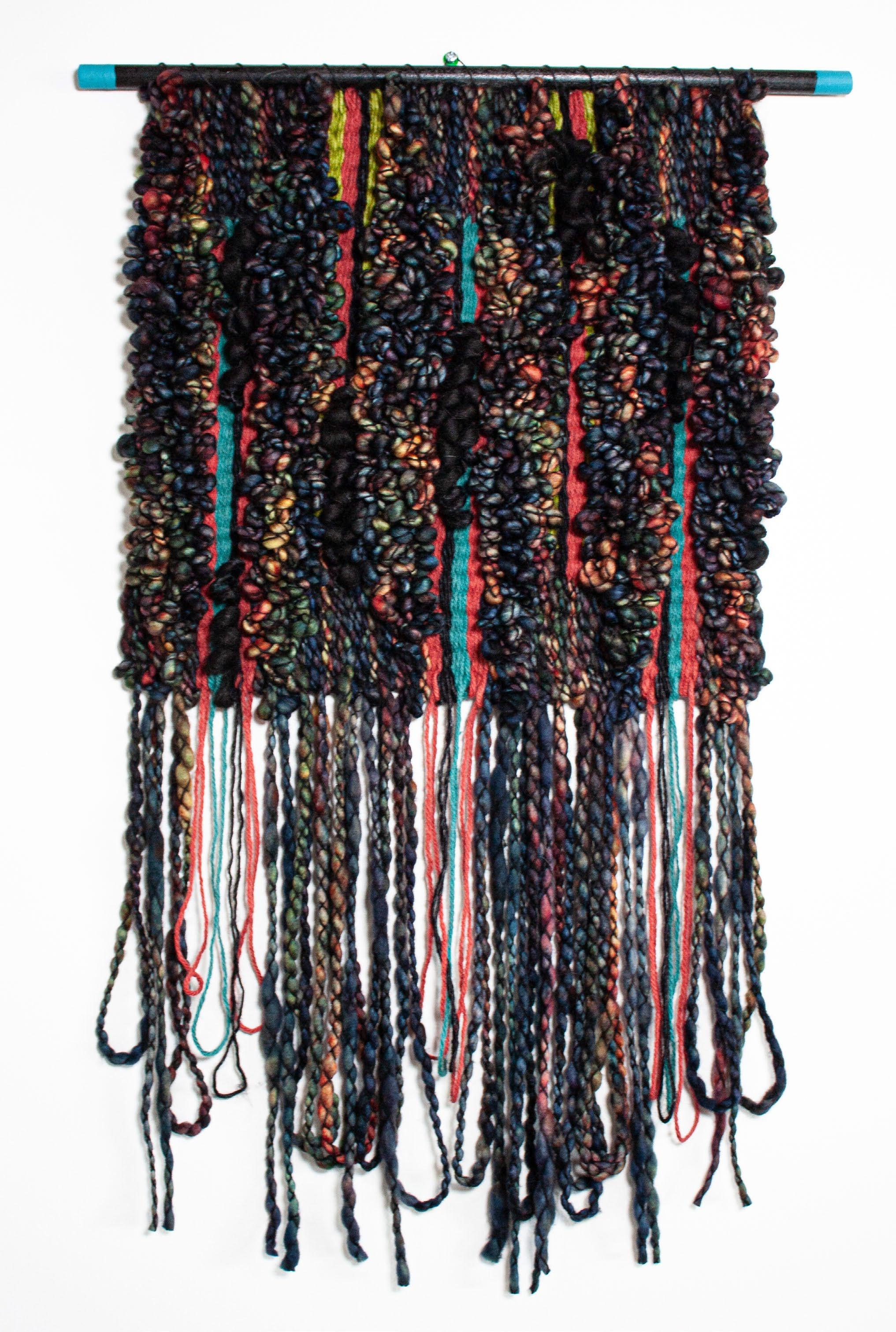 While Leigh has had past success with her beloved photography career, her passion now lies with fiber art. Weaving is a very slow, thoughtful process and has become Leigh’s meditation practice, rhythmically layering multiple textures, colors and shapes line by line to create a modern take on an ancient art form. Each piece begins with a bold color palette and naturally unfolds as the colors flow into soft, tactile patterns. The tapestries blend many types of fiber including small batch, kettle dyed Merino wool, Color Core yarn from Love Fest Fibers, and an assortment of colorful and textural rope, wool, cotton, bamboo, and hemp yarn from around the globe.
