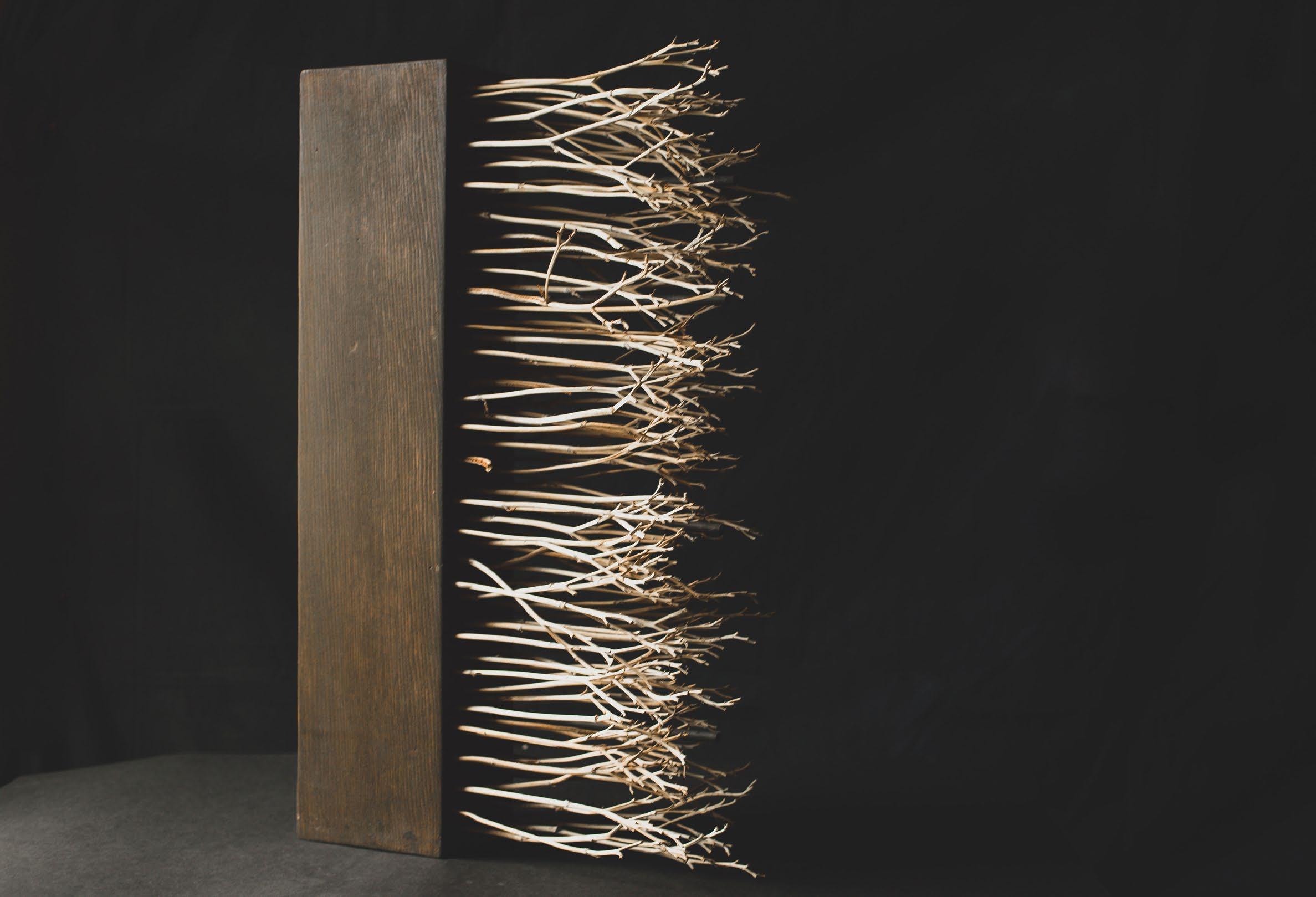 Softness and safety envelop the viewer in Petra Brown’s socially engaged weavings. Her colorful tapestry When Our Identities Manifest, is more than its monolithic presence. It is a relic of connection between cultures and generations. Between loved ones. Between past and present. Rocío Rodriguez’s sculptures and photographs live in this liminal space between. Her photographs balance whispers of light with deep shadow, and her sculptures seamlessly fuse the strength of concrete and steel with the beauty of brittle branches.