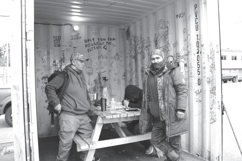 ff Cook, a former student of the Alberni Indian Residential School, joins others from the Port Alberni community in repainting the ‘Orange Bridge’ after the landmark was defaced with graffiti on Jan. 21. tor activity at the section of Highway 4. “If there was ever a need to keep an eye on something it’s right now,” said Watts. He noted that the ministry was quick to respond to Tseshaht’s request to limit highway traffic on the bridge to one alternating lane as the graffiti was painted over on the afternoon of Jan. 21. Dozens