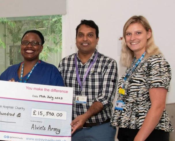 Acouple have presented more than £15,000 to the East and North Hertfordshire Hospitals’ Charity to say thank you to the neonatal team at Lister Hospital in Stevenage for their care when their son, Alvin, was born prematurely earlier this year.