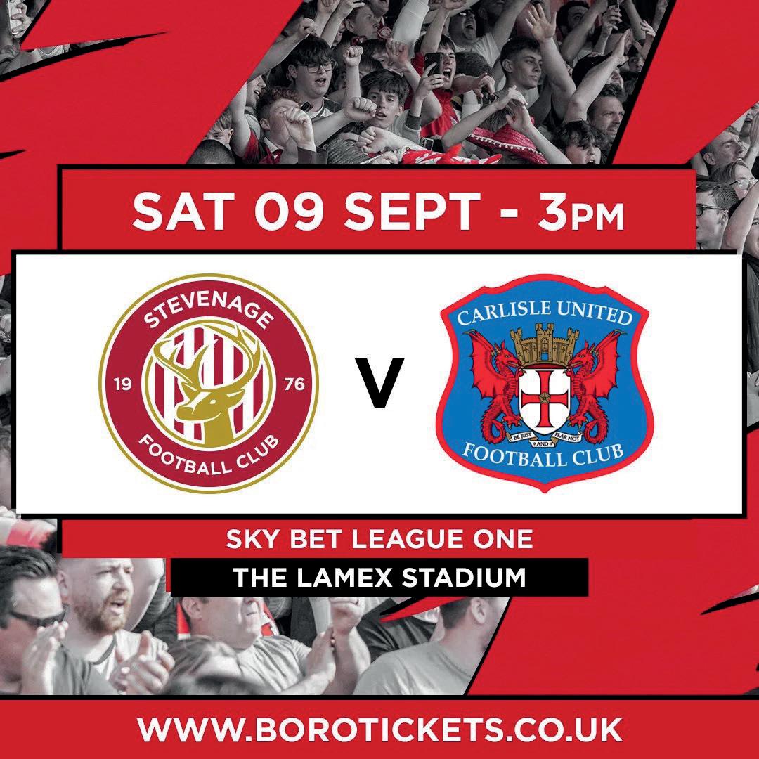 We’re barely six weeks into the new League One campaign and – already – we’ve met all three other teams who came up from League Two with us. The Cumbrians are the last of that trio and come to the Lamex looking to defend a headto-head record in which they’ve won 12 of our previous 26 encounters. Boro’, for comparison, have won nine times. A word of warning too: our home form against our guests today has been very topsy-turvy in recent years.