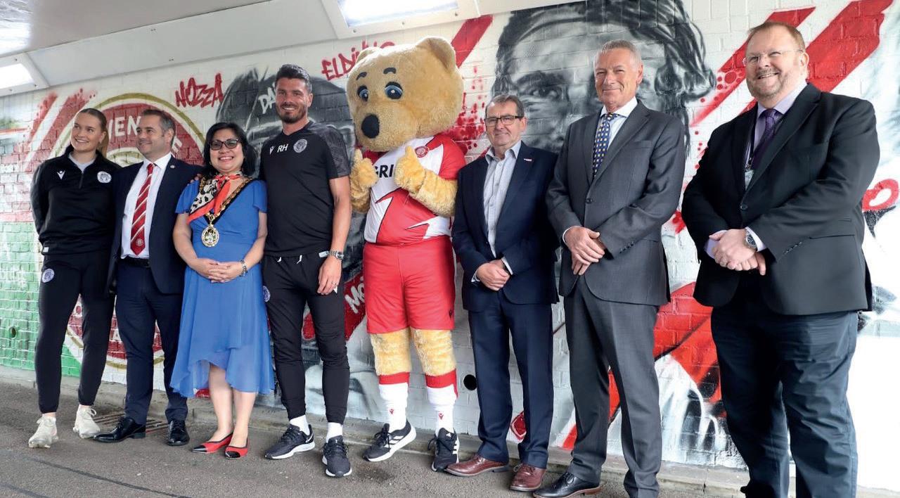 New artwork celebrating Stevenage Football Club & Stevenage FC Foundation has been unveiled at the underpass leading to The Lamex Stadium. As part of the town’s £1bn regeneration plans, Stevenage Borough Council, Hertfordshire County Council and street artists MurWalls have worked in partnership to improve the pathways to key areas of our town. Along with two other underpasses themed to represent the town’s achievements in science and technology and its green spaces and active travel routes, the underpass leading to The Lamex Stadium commemorates the history of Stevenage Football Club and its work in the community.