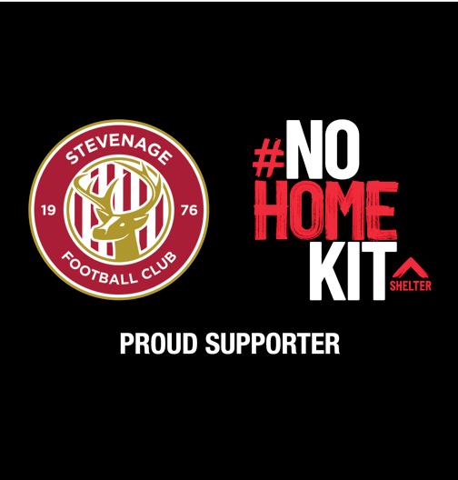 Stevenage Football Club are proud to be supporting Shelter’s #NoHomeKit campaign at The Lamex Stadium. Every 90 minutes, 25 households are made homeless in England.