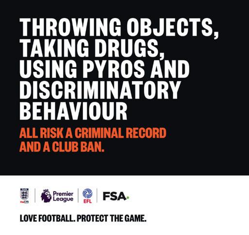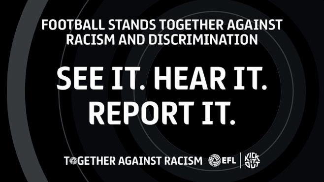 Anonymously message the Matchday Control Room direct on 07935 577897 to report any signs of racism and all forms of discrimination.