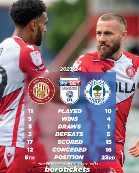 MATCH TICKETS STILL AVAILABLE FOR STEVENAGE VS WIGAN ATHLETIC All tickets must be purchased before reaching the turnstiles either online or from the North Stand Ticket Office.