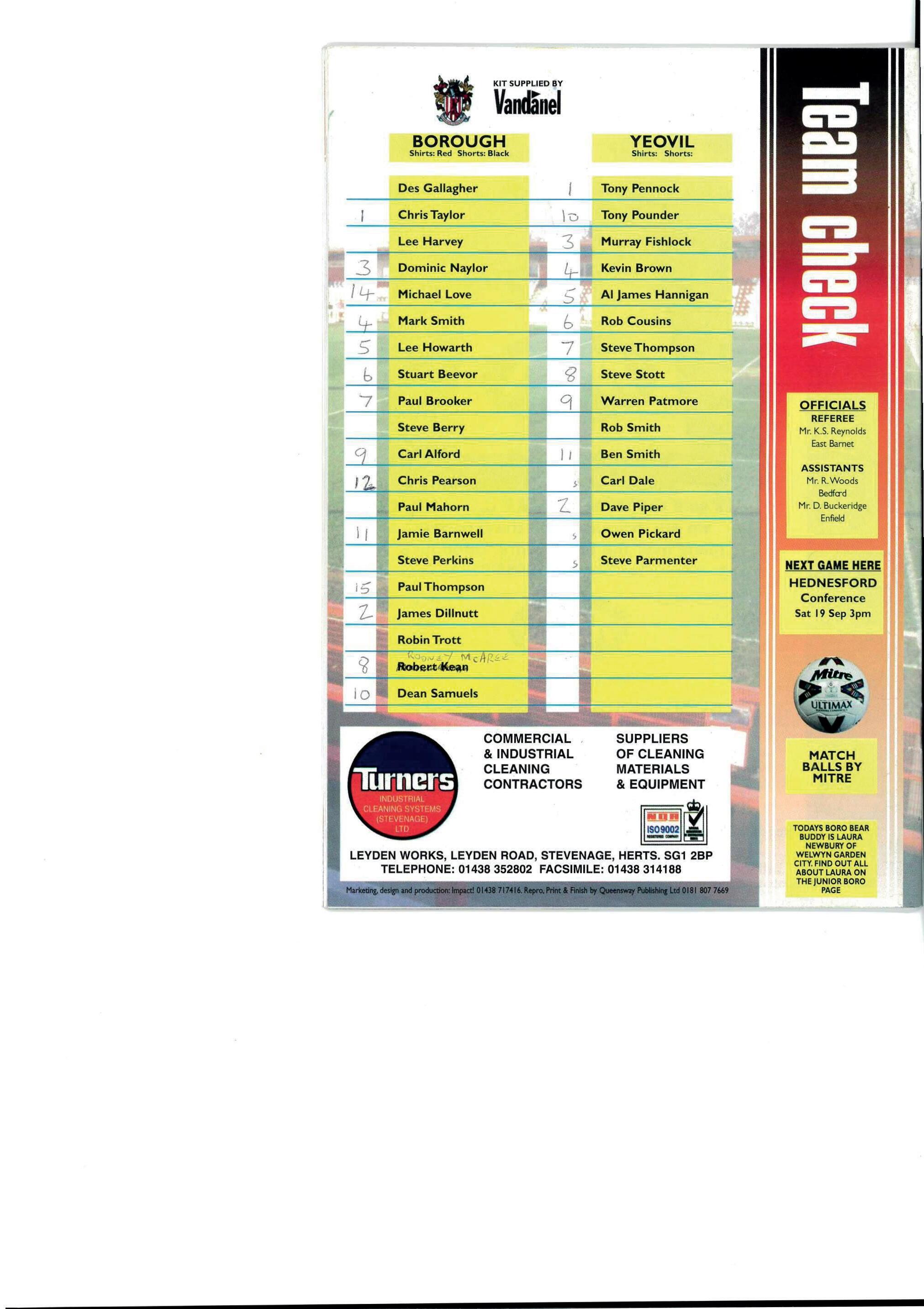 SFC v Yeovil 14-09-1998