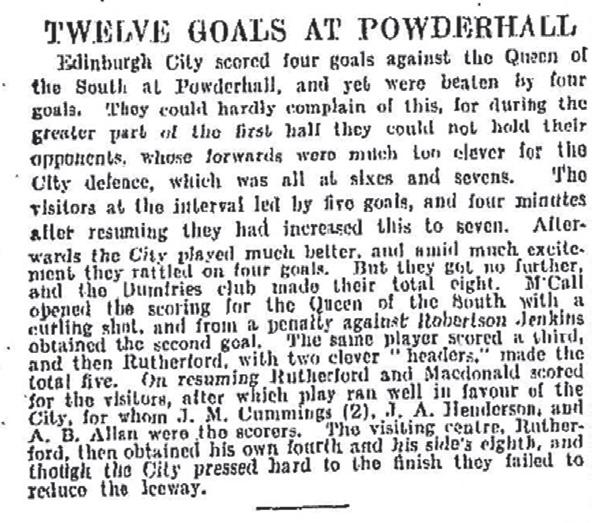 Queen of the South were founded in March 1919 when local enthusiasts came together to form a football club worthy of the town’s status. The clubs which amalgamated to form Queen of the South United (the suffix was soon dropped) were Dumfries F.C., 5th King’s Own Scottish Borderers and the works side of the Arrol-Johnston Car Company. Dumfries Amateurs declined to take part in the merger, and were defunct within a year.