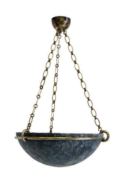 Ceiling pendant in cast plaster with metal fittings. Available to order in custom height and with various finish and chain options.