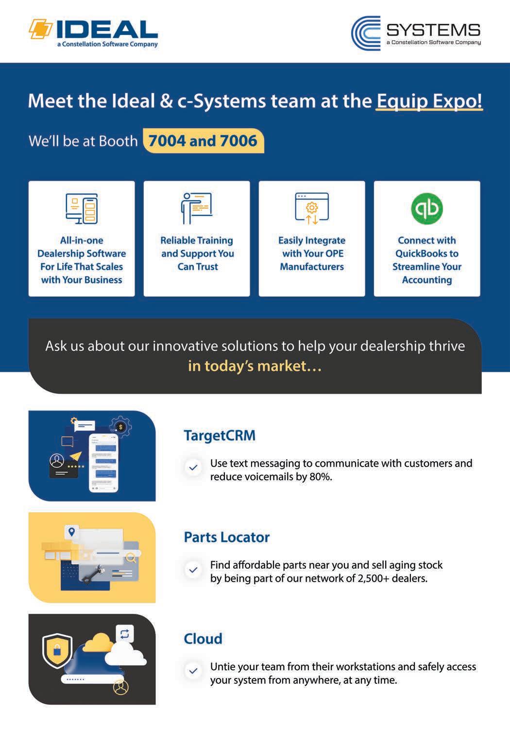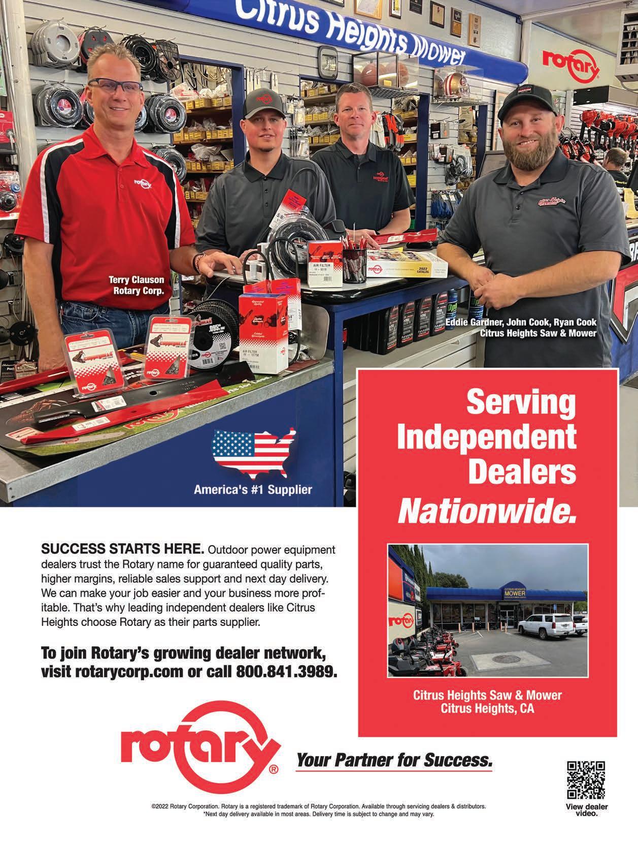 Power Equipment Trade (ISSN 1063-0414) is published 6 times annually (February, April, June, August, October and December) by Hatton-Brown Publishers, Inc., 225 Hanrick St., Montgomery, AL 36104. Subscription Information—PET is sent free to qualifying industry professionals in the U.S. All non-qualified U.S. subscriptions are $55 annually; $65 in Canada; $95 (Airmail) in all other countries (U.S. funds). Single copies, $5 each; special issues, $20 (U.S. funds). Subscription Inquiries—TOLL-FREE 800-669-5613; Fax 888-611-4525. Go to www.poweret.com and click on the subscribe button to subscribe/renew via the web. All advertisements for Power Equipment Trade magazine are accepted and published by Hatton-Brown Publishers, Inc. with the understanding that the advertiser and/or advertising agency are authorized to publish the entire contents and subject matter thereof. The advertiser and/or advertising agency will defend, indemnify and hold Hatton-Brown Publishers, Inc. harmless from and against any loss, expenses, or other liability resulting from any claims or lawsuits for libel violations or right of privacy or publicity, plagiarism, copyright or trademark infringement and any other claims or lawsuits that may arise out of publication of such advertisement. Hatton-Brown Publishers, Inc. neither endorses nor makes any representation or guarantee as to the quality of goods and services advertised in Power Equipment Trade. Hatton-Brown Publishers, Inc. reserves the right to reject any advertisement which it deems inappropriate. Copyright ® 2022 All rights reserved. Reproduction in whole or in part without written permission is prohibited. Periodicals postage paid at Montgomery, Ala. and additional mailing offices. Printed in USA.