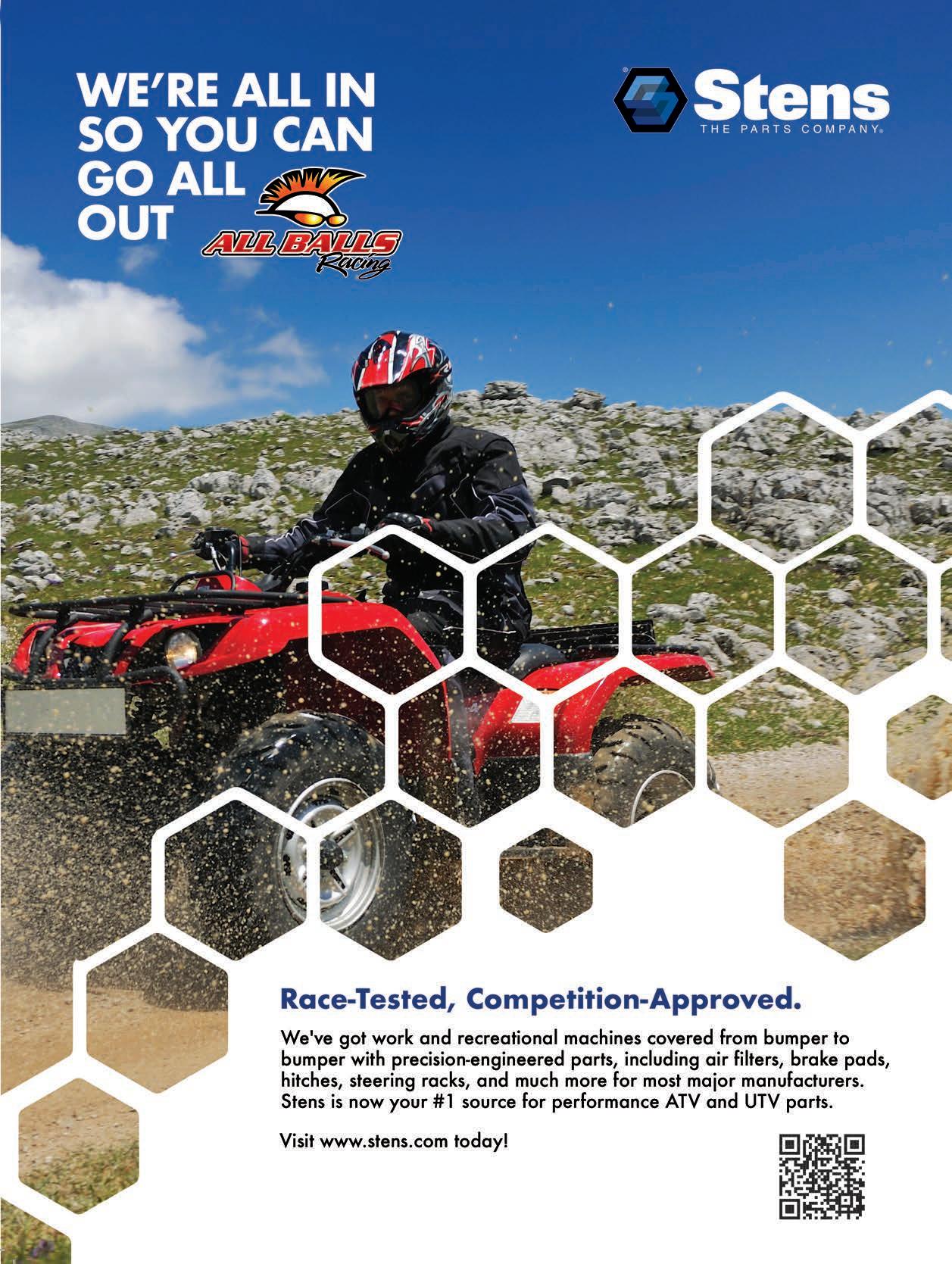 All Balls Racing Group and Stens are revving up powersports enthusiasts with the launch of the “Win this Beast” sweepstakes. The companies have part nered with Power Sports Nation and UTV Sports to rebuild and customize a 2019 Polaris General. One lucky win ner will get the tricked-out side-byside, outfitted with more than $10,000 of accessories and camo wrapped, courtesy of Mossy Oak. This adventure vehicle has an approximate retail value of up to $27,700.