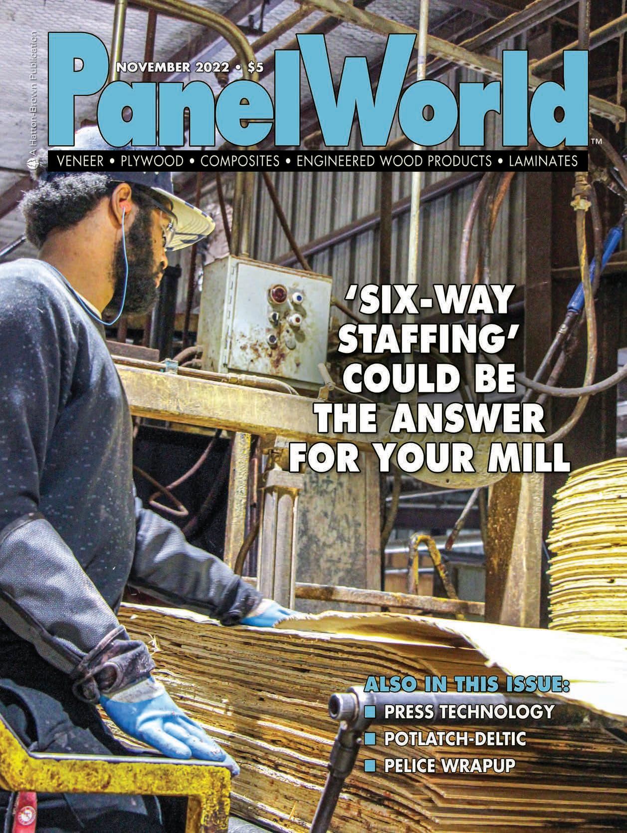 plants and allied export-import businesses throughout the world. All non-qualified U.S. subscriptions are $50 annually; $60 in Canada; $95 (Airmail) in all other countries (U.S. funds). Single copies, $5 each; special issues, $20 (U.S. funds). Subscription Inquiries TOLL-FREE 800-669-5613; Fax 888-611-4525. Go to www.panelworldmag.com and click on the subscribe button to subscribe or renew via the web. All advertisements for Panel World magazine are accepted and published by Plywood & Panel World, Inc. with the understanding that the advertiser and/or advertising agency are authorized to publish the entire contents and subject matter thereof. The advertiser and/or advertising agency will defend, indemnify and hold Plywood & Panel World, Inc. harmless from and against any loss, expenses, or other liability resulting from any claims or lawsuits for libel violations or right of privacy or publicity, plagiarism, copyright or trademark infringement and any other claims or lawsuits that may arise out of publication of such advertisement. Plywood & Panel World, Inc. neither endorses nor makes any representation or guarantee as to the quality of goods and services advertised in Panel World. Hatton-Brown Publishers, Inc. reserves the right to reject any advertisement which it deems inappropriate. Copyright ® 2022. All rights reserved. Reproduction in whole or in part without written permission is prohibited. Printed in USA.