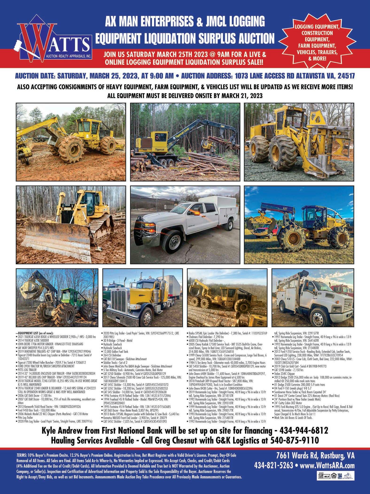 Southern Loggin’ Times ● FEBRUARY 2023 ● 35 WANT TO PLACE YOUR CLASSIFIED AD IN IRONWORKS? CALL 334-699-7837, 1-800-669-5613 OR EMAIL: CLASS@SOUTHERNLOGGINTIMES.COM 2891 2687 CLICK HERE IF YOU HAVE NOT ALREADY OPTED IN!