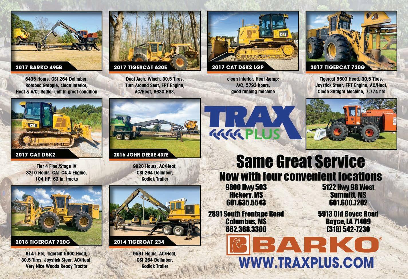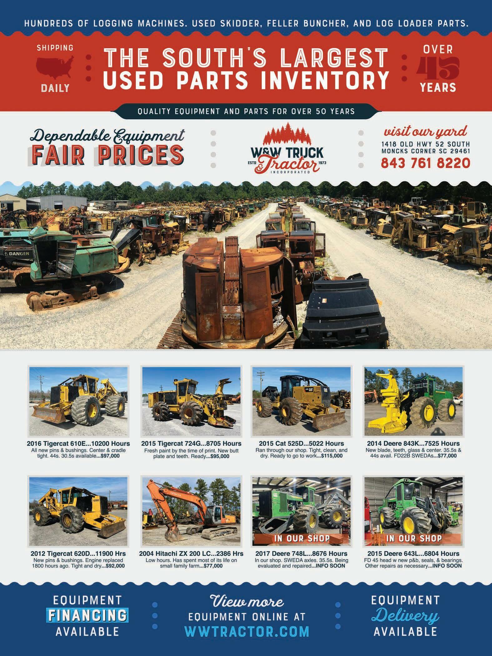 American Truck Parts 26 888.383.8884 Around The World Salvage 34 936.634.7210 Big John Trailers 5 800.771.4140 BITCO Insurance 30 800.475.4477 Caterpillar Dealer Promotion 13 919.550.1201 Cleanfix North America 38 855.738.3267 John Deere Forestry 17 800.503.3373 Dobbs Equipment 2 844.469.3622 Eastern Surplus 25 855.332.0500 FMI Trailers 24 601.508.3333 Forest Chain 25 800.288.0887 Forestry First 34 803.708.0624 Forestry Mutual Insurance 3 800.849.7788 G & W Equipment 23 800.284.9032 Hawkins & Rawlinson 12 888.822.1173 Interstate Tire Service 36 864.947.9208 Kaufman Trailers 19 336.790.6807 Mike Ledkins Insurance Agency 22 800.766.8349 LMI-Tennessee 29 800.467.0944 Loadrite Southern Star 26 256.270.8775 Logger Associations 25 Magnolia Trailers 31 800.738.2123 Maxi-Load Scale Systems 18 877.265.1486 Midsouth Forestry Equipment 10 870.226.0000 Moore Logging Supply 26 888.754.5613 Morbark 1,11 800.831.0042 Pitts Trailers 40 800.321.8073 Ponsse North America 39 715.369.4833 Prolenc Manufacturing 10 877.563.8899 Quadco Equipment 16 800.668.3340 Quality Equipment & Parts 33 386.487.3896 Southern Loggers Cooperative 23 318.445.0750 Stribling Equipment 35 855.781.9408 Tidewater Equipment 35,36 912.638.7726 Tigercat Industries 7 519.753.2000 TraxPlus 27 601.635.5543 W & W Truck & Tractor 32 843.761.8220 Waters International Trucks 36 601.693.4807 Watts Auction Realty Appraisal 21 434.821.5263 J M Wood Auction 28 334.264.3265 Yancey Brothers 23 800.282.1562 38 ● FEBRUARY 2023 ● Southern Loggin’ Times
