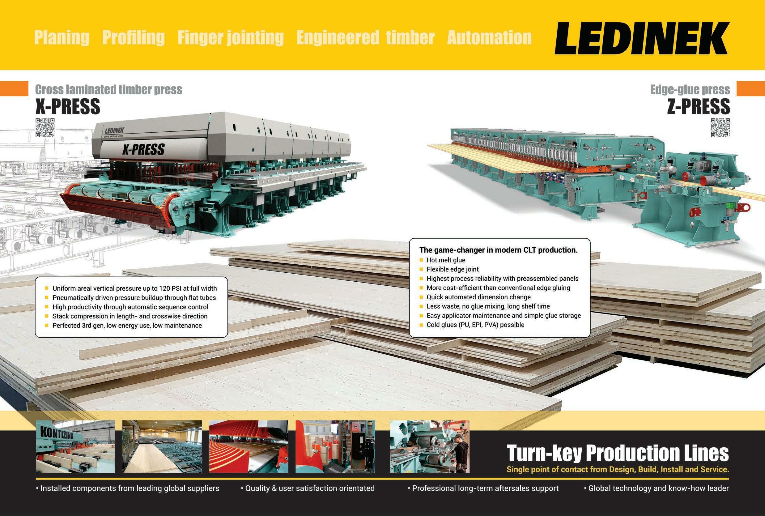 adjacent SmartLam’s existing CLT facility in a 144,000 sq. ft. structure, will manufacture annually 84MMBF of large glulam beams and columns that are required to properly serve the mass timber market. SmartLam has chosen to partner with Ledinek to build a turnkey, state-ofthe-art glulam facility. The new glulam facility is expected to be 100% operational in October 2024.