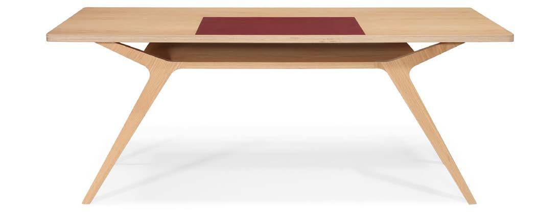 Today’s homes are getting smaller and users want more minimalist decorations, so reduction is essential. On Dona table a colored center board can be decorative, but also make a distinction between the work and dining areas.