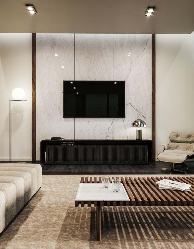 A minimalist design, inspired by basic geometric shapes, without excess of details. Designed to highlight the essence of materials, their textures, contrasts and allow the user to enjoy their versatility in different spaces while admiring the contrast between the comfort of wood and the beauty of marble.
