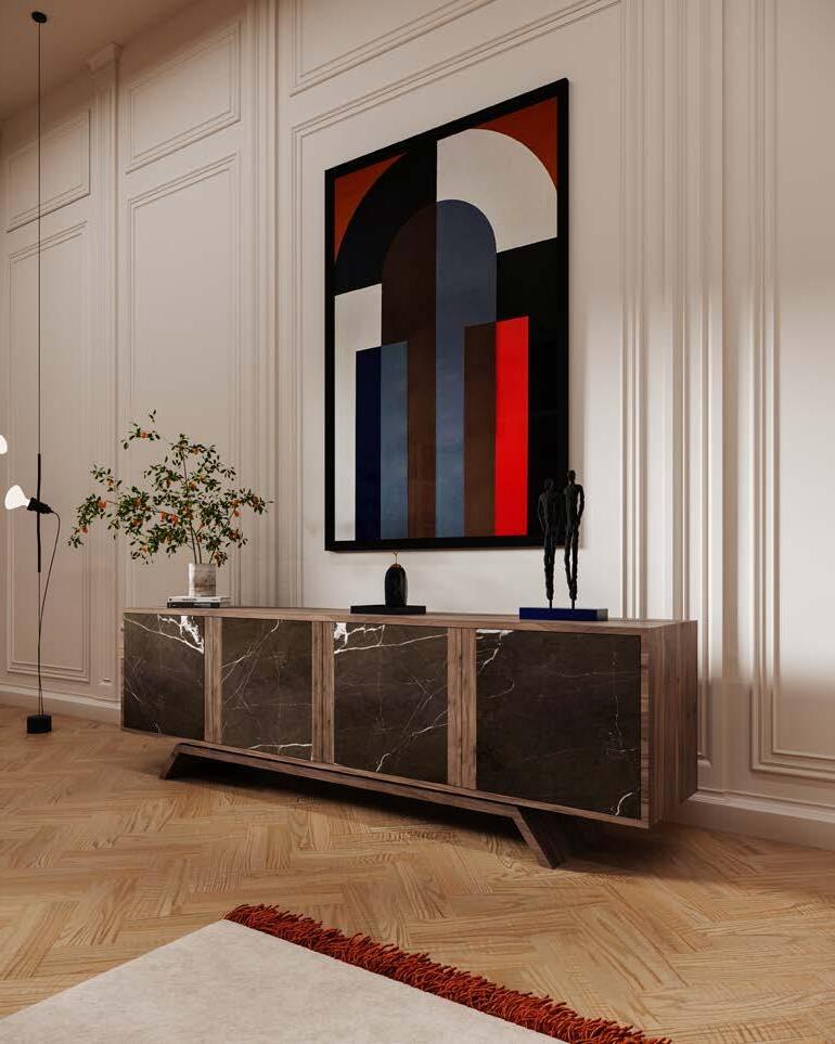 The Butler sideboard can be made in different woods and marbles, so you can choose a combination of materials that best suits your living space.