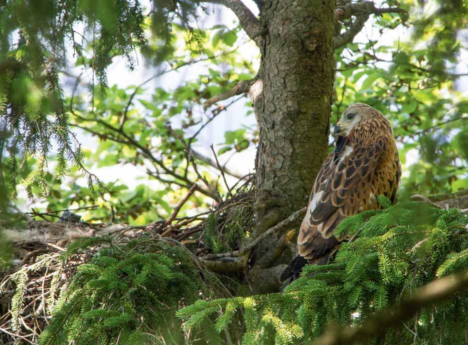 Dieser junge Rotmilan hat den ersten Winter überstanden und erkundet nun mögliche zukünftige Brutgebiete.