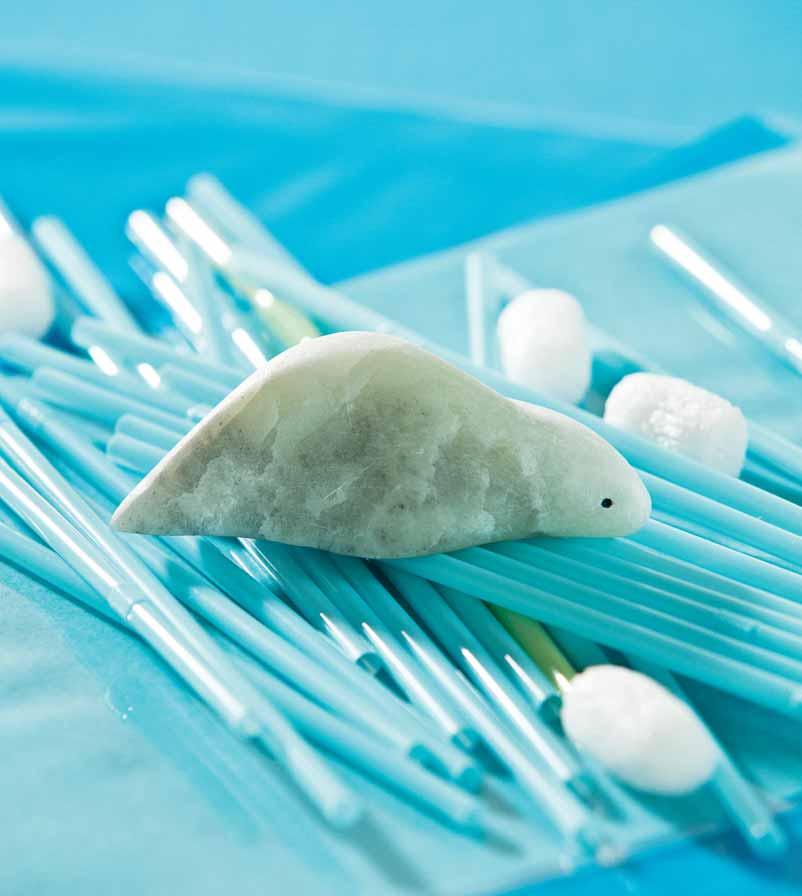 betrachtest du deinen Speckstein erst einmal lange von allen Seiten und überlegst, welche Form in ihm stecken könnte. Hast du dich entschieden, dann gilt es, diese Form – hier eine Robbe – aus dem Stein herauszuholen.