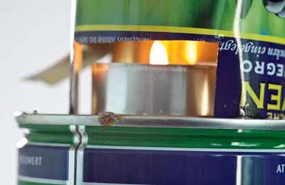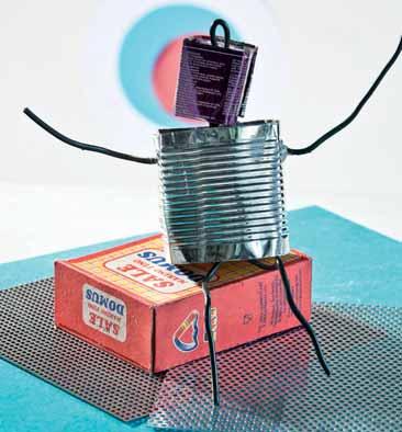 Aus den Blechdosen schneidest du lange Streifen mit seitlichen Laschen. Mit der Zange biegst du die Blechstreifen zu Würfeln mit offener Ober- und Unterseite. Wie bei der Gitarre auf Seite 81 schließt du die Form, indem du die Laschen in Schlitze an der gegenüberliegenden