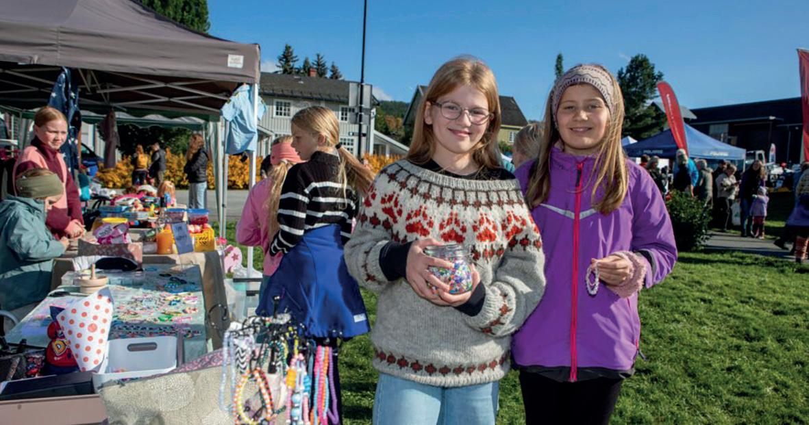 UNGE SELGERE: Det er godt å bli kvitt noen gamle saker en ikke har bruk for, syntes Martine Dalflyen Sønmør (10) og Ella Furustad Grindflek (10). Foto: Lars Vingelsgård