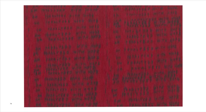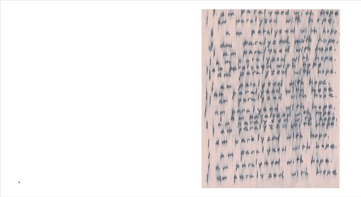 Roni Horn transforms comedian Maria Bamford’s phrase, “I am paralyzed with hope,” into a powerful examination of language and emotion in her latest artist’s book.