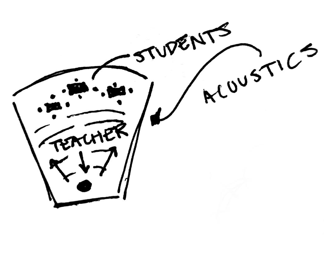 The classroom is designed as a bright, contemporary learning environment that emphasizes flexibility and engagement.
