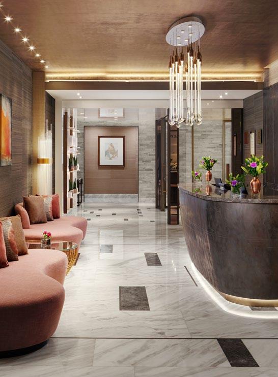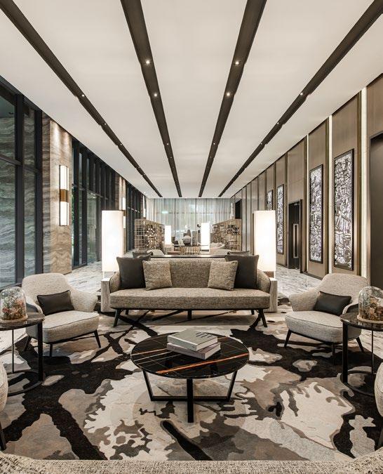 Geometric Elegance: Symmetrical patterns and stepped motifs in our lobby and suites, creating a sense of order and sophistication. Rich Materiality: A palette of polished metals, marble, and glass that captures light and evokes a luxurious, celebrity-style atmosphere.