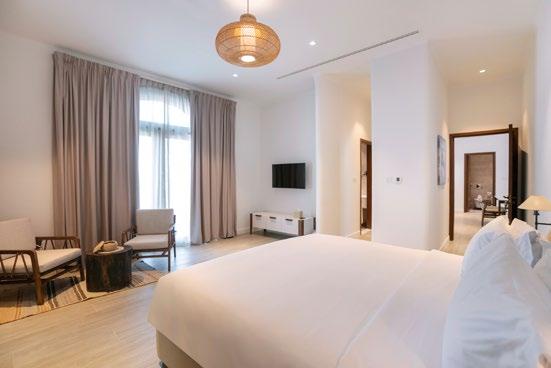 Mina Hotel and Residences’ architecture reflects Qatari indulge, with inclined walls, wooden doors, windows and shutters adorned with vintage metalwork. The Hotel also includes modern gym facilities. Every detail has been carefully curated to provide contemporary and minimalist luxury. Guests can immerse themselves in refined design, indulge in in-room refreshments and revel in the breathtaking sea views that grace the apartments.