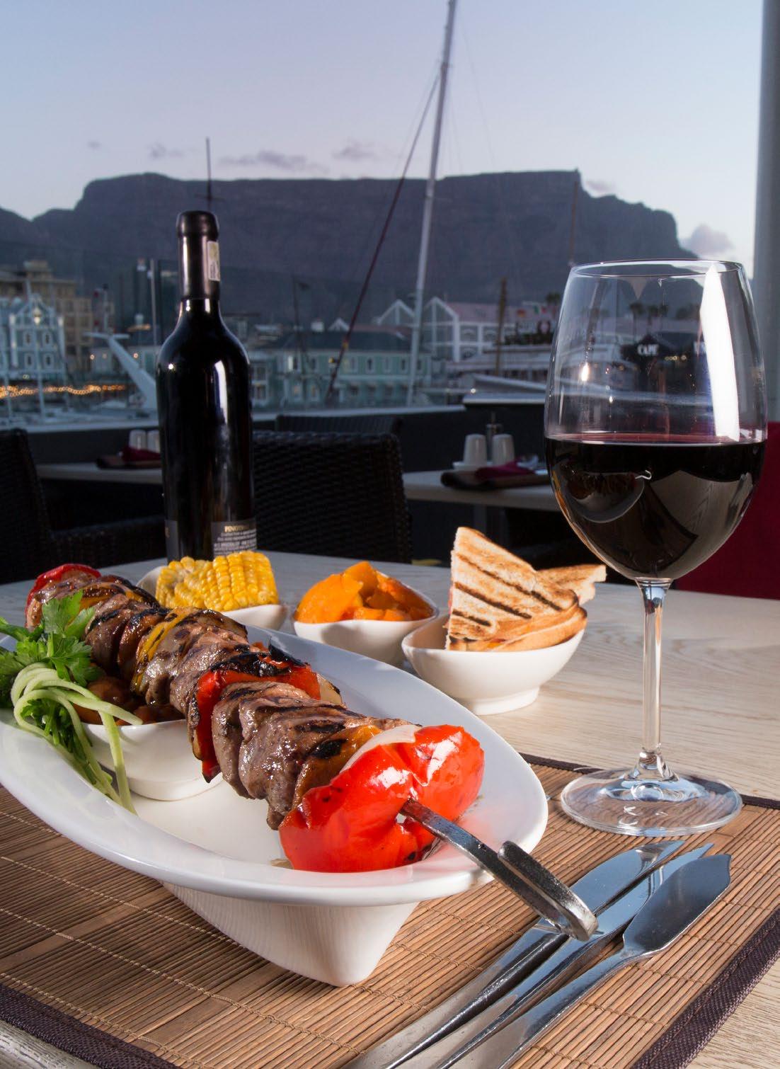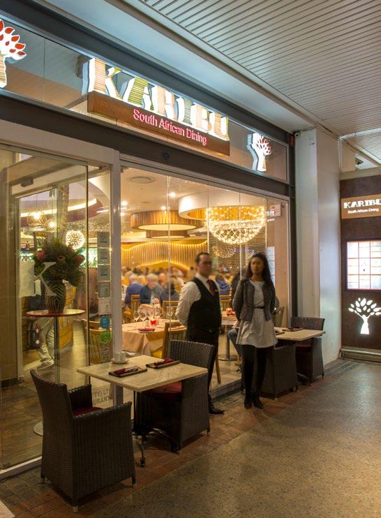 offer, from succulent steaks and delicious seafood to Cape Malay and traditional local favourites like bobotie, potjiekos, game, snoekbraai, putu and chakalaka and koeksisters. Karibu Restaurant offers an exclusive wine list, including the best South African award-winning wines, with a large selection served by the glass.
