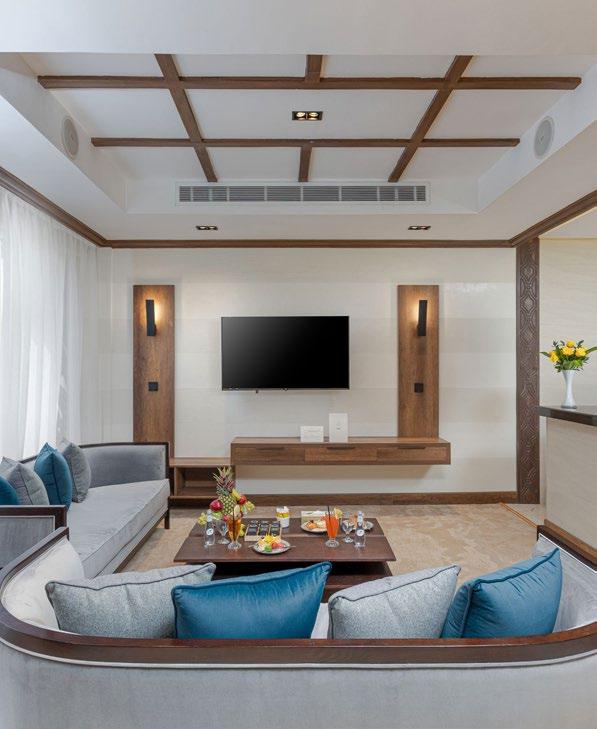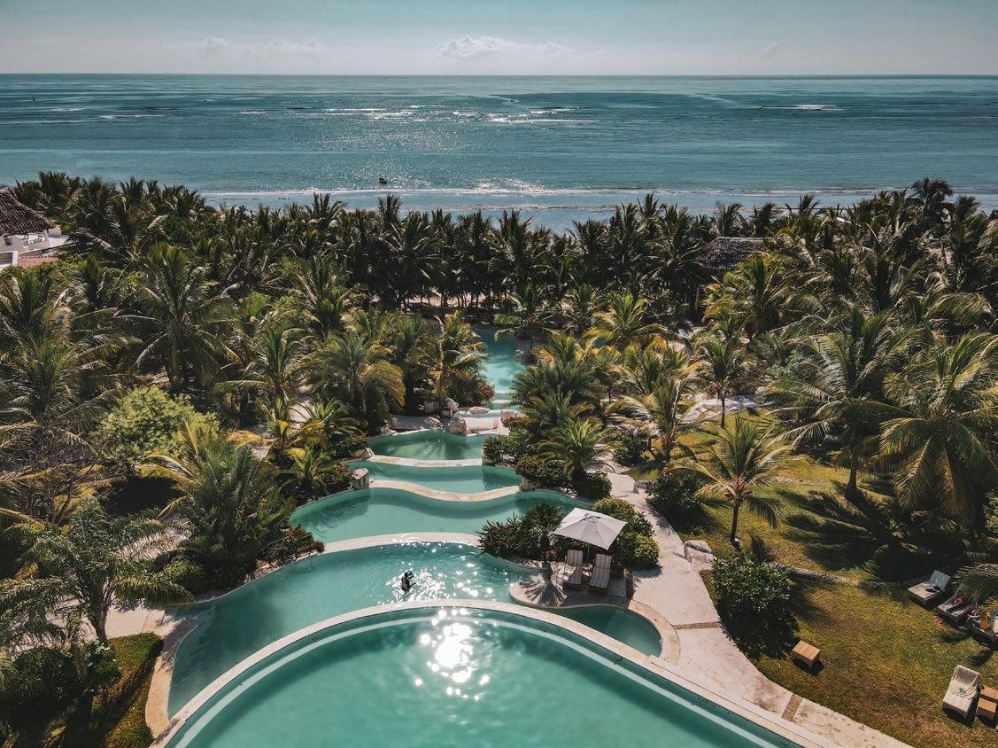 The resort features spacious and beautifully designed rooms and suites, each adorned with intricate Swahiliinspired décor, private balconies, and modern amenities. Guests can enjoy a unique cascading infinity pool stretching over several levels, providing a spectacular setting to unwind. The resort also offers a world-class spa, a