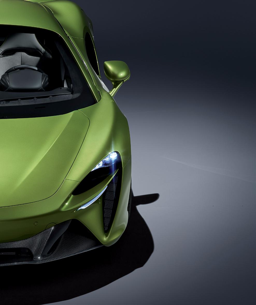 The Artura’s interior features a blend of revolutionary ergonomics, technology, design, and refnement. The spacious cabin incorporates highquality materials, contemporary aesthetics, and cutting-edge switchgear. McLaren ofers extensive customization options, including 1 exterior paint colors and additional options through McLaren Special Operations for carbon-fber body parts and bespoke commissions. “Our mission was to create a piece of pure technical sculpture, where technology doesn’t distract but enhances the visual experience,” reveals Mockford. “We were guided throughout by three key phrases — purity, technical sculpture, and functional jewelry. The purity is not only purity of line, but also in the integration of components technical sculpture references the need to be stunning to look at, but there for a reason, like the forms you see in nature while functional jewelry is best explained by the fact that we don’t decorate we do what is needed and make it beautiful.”
