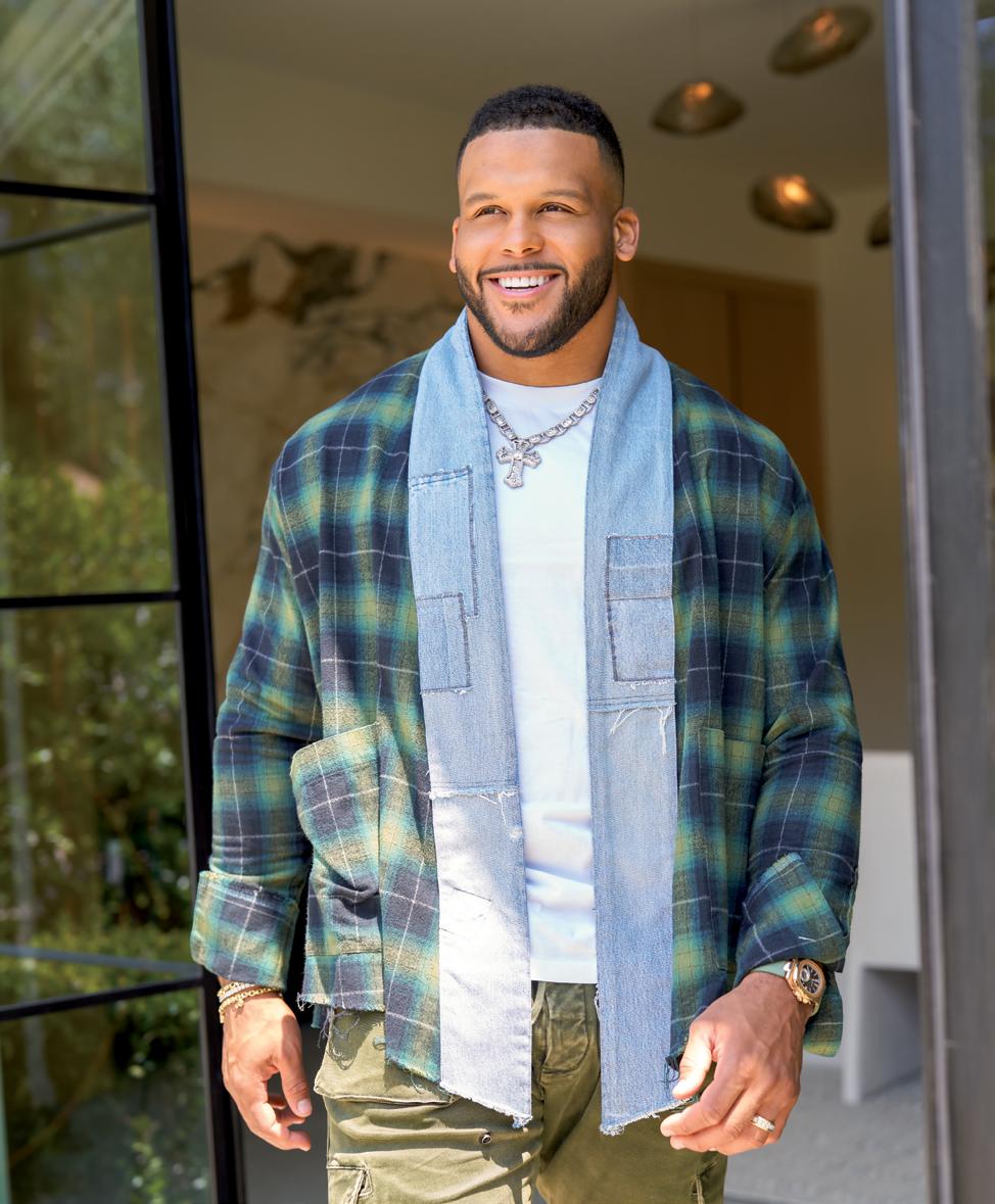 “I’m obsessed with french fries,” the 32-year-old Super Bowl LVI champ confdes just before our cover shoot at his Hidden Hills, California, home in June. “I have to have them once a week, but only on the weekends. It’s my biggest kryptonite. Even if it’s after my cheat day, I have to at least eat one — it’s so hard for me to turn them down.”