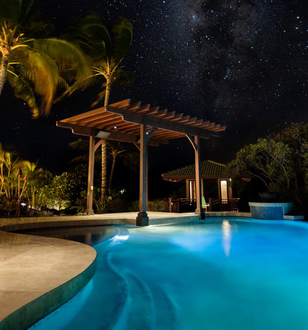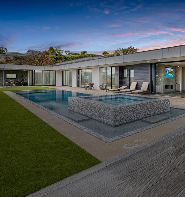 “ Over the top,” just three simple words that accurately sum up a very complex outdoor living project by award-winning designer Ryan Hughes Design Build. Encompassing no less than five bodies of water, multiple fire features and state-ofthe-art leisure elements, Carmel Estate is a one of-a-kind venue designed for enjoyment, whether for family leisure or corporate gatherings. The Carmel Estate “flows” with amazing features across levels and layers each made for enjoyment.