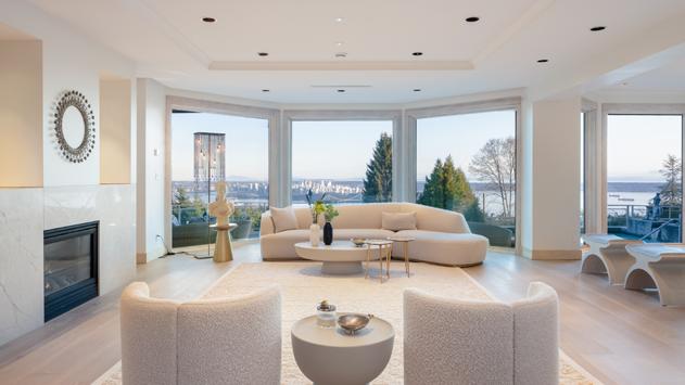 This magnificent Robert Ledingham designed residence is situated on a private, estate property in one of West Vancouver’s most exclusive neighborhoods of the British Properties, ofering spectacular panoramic views of the ocean, downtown Vancouver, Stanley Park and Vancouver Island. The modern architectural elegance and grandeur with its exterior and beautiful landscape across almost an acre of south facing property, create a majestic presence providing over seven thousand square feet of formal and informal living on three expansive levels. Exquisite design, master craftsmanship, foor to ceiling windows, and opulent fnishes give this residence an open and bright California feel, together with an impeccable choice of quality materials blend seamlessly to create the perfect balance of indoor and outdoor living.