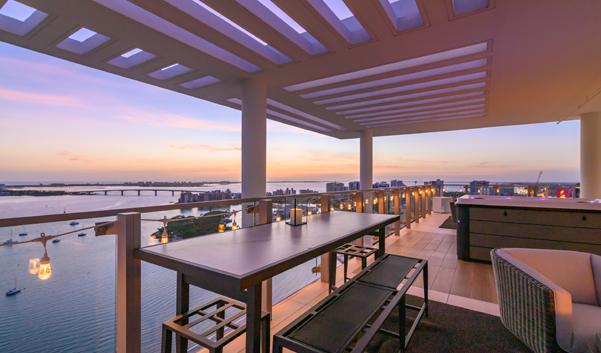 Aspectacular brand new 3,300 ft2, two story penthouse in midtown, fully furnished, close to shops, restaurants and main boardwalk. It has high ceilings, 2 bedrooms 2 full bathrooms on the main level, a modern kitchen with top appliances, dining and living area and wraparound terrace where You can enjoy the great views of town and the whole bay (and beyond). Upper level has a huge private terrace with full bathroom, bar and BBQ area, entertainment and outdoor lounge area with custom made Jacuzzi where You can enjoy the sunset and simply relax and enjoy. One car secure under roof parking space with storage space is included. ‘’A must see unique property ‘’