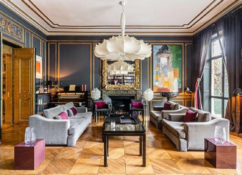 Stunning Parc Monceau residence. In a building built in 1905, on the garden level, an elegant approx. 318 sq.m. or 3,422 sq ft (Carrez) triplex apartment - like a house - opens onto a magnifcent garden with terrace enjoying direct access to the Monceau Park (a public park situated in the 8th arrondissement of Paris, France at the junction of Boulevard de Courcelles, Rue de Prony and Rue Georges Berger. The park features an exquisite rotunda and covers an area of 20 acres). On the ground foor of this exceptional residence: an entrance with a cloakroom, a superb approx. 70 sq.m. or 753 sq ft living room opening onto the approx. 96 sq.m. or 1,033 sqft garden, a rotunda dining room decorated by Jansen, a separate chef ’skitchen. On the second foor: a master suite with luxurious dressing room and bathroom, a second bedroom with shower room and elite dressing room, a third bedroom with ofce and shower room, and an ample ofce. In the basement: a ffth bedroom with shower room, a gym (or bedroom) with shower room, and a laundry room. Adjoining: