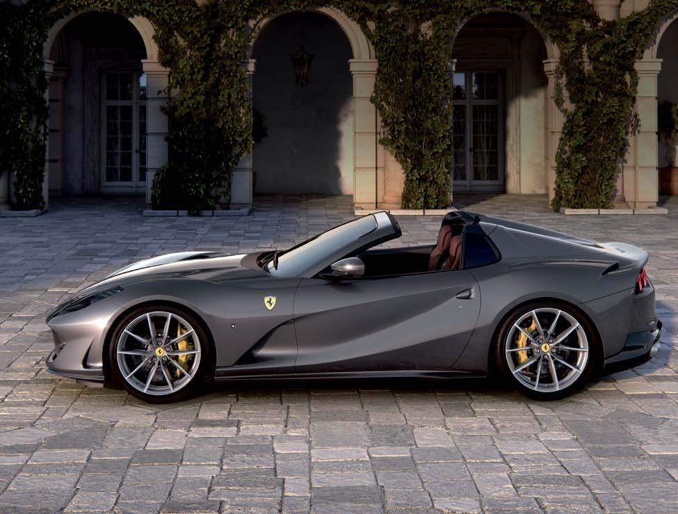The latter option always comes to mind when I am behind the wheel of a Ferrari, one where the more cylinders, the better. And the gorgeous Ferrari 812 GTS (for “gran turismo spider”) does not disappoint in the slightest. (Fans of the Ferrari 812 Superfast will be right at home in this iteration, as the two models are mechanically identical. And long-term fans of Ferrari will note that there is no “i,” which once was used to denote “injection,” following the “GTS”; virtually no car these days has carburetion, so it would be as super uous as announcing “power steering and bra es.