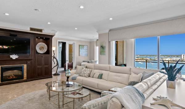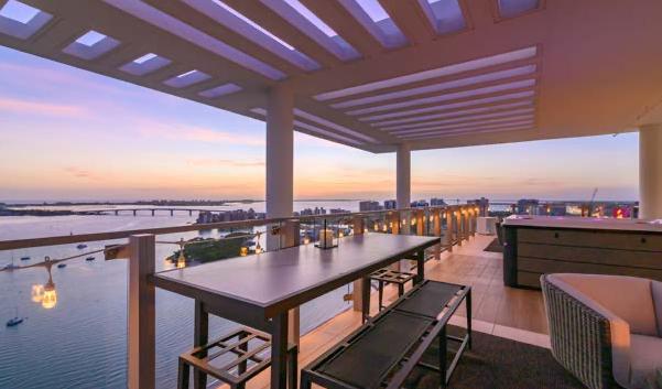 Aspectacular brand new 3,300 ft2, two story penthouse in midtown, fully furnished, close to shops, restaurants and main boardwalk. It has high ceilings, 2 bedrooms 2 full bathrooms on the main level, a modern kitchen with top appliances, dining and living area and wraparound terrace where You can enjoy the great views of town and the whole bay (and beyond). Upper level has a huge private terrace with full bathroom, bar and BBQ area, entertainment and outdoor lounge area with custom made Jacuzzi where You can enjoy the sunset and simply relax and enjoy. One car secure under roof parking space with storage space is included. ‘’A must see unique property ‘’