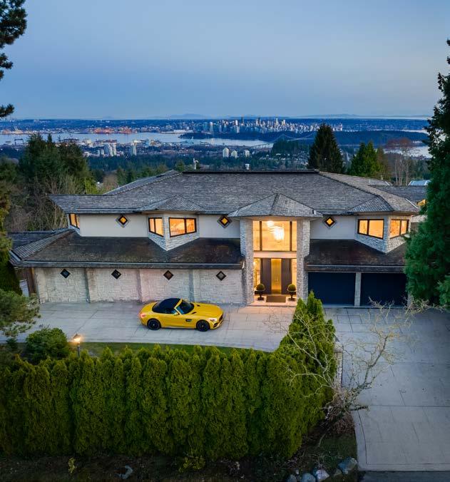 This magnificent Robert Ledingham designed residence is situated on a private, estate property in one of West Vancouver’s most exclusive neighborhoods of the British Properties, ofering spectacular panoramic views of the ocean, downtown Vancouver, Stanley Park and Vancouver Island. The modern architectural elegance and grandeur with its exterior and beautiful landscape across almost an acre of south facing property, create a majestic presence providing over seven thousand square feet of formal and informal living on three expansive levels. Exquisite design, master craftsmanship, foor to ceiling windows, and opulent fnishes give this residence an open and bright California feel, together with an impeccable choice of quality materials blend seamlessly to create the perfect balance of indoor and outdoor living.