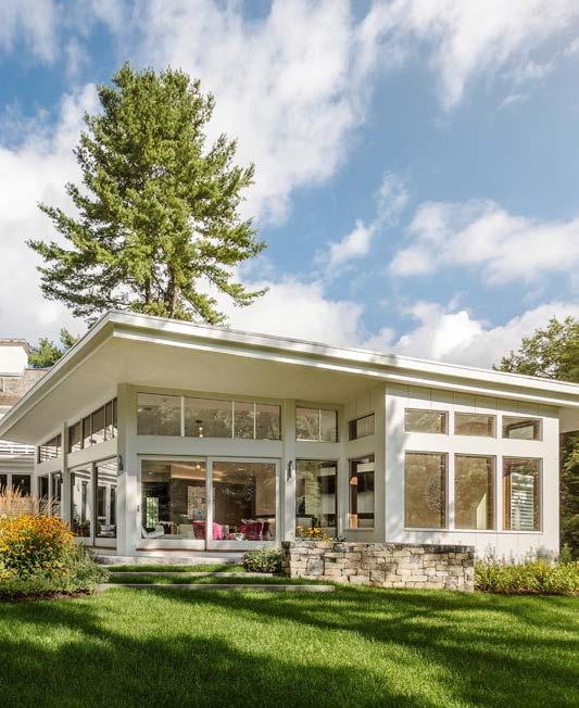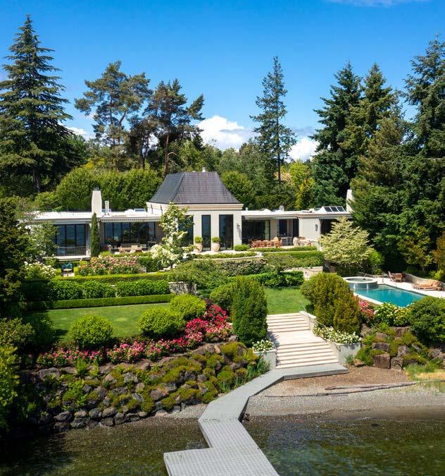 This incredibly rare waterfront estate is one of only four waterfront residences within the nine-home enclave known as The Reed Estate. The magnifcent 8,000+ sq. ft. residence is sited on just over an acre, with more than 120 feet of walk out beachfront and a private four-season private dock. A collaboration between owner and designer has created an efortless, single level indoor / outdoor living experience. Three large en-suite bedrooms and ofce on the main plus a large daylight lower-level fex space (guest suite/gym or media rm) with ¾ bath, kitchenette and foor to ceiling glass doors leading to the pool. Expansive limestone terrace overlooking the rose garden, specimen trees and level lawn. The pool and spa are secluded and surrounded by tall trees, while retaining views of the garden and the lake.