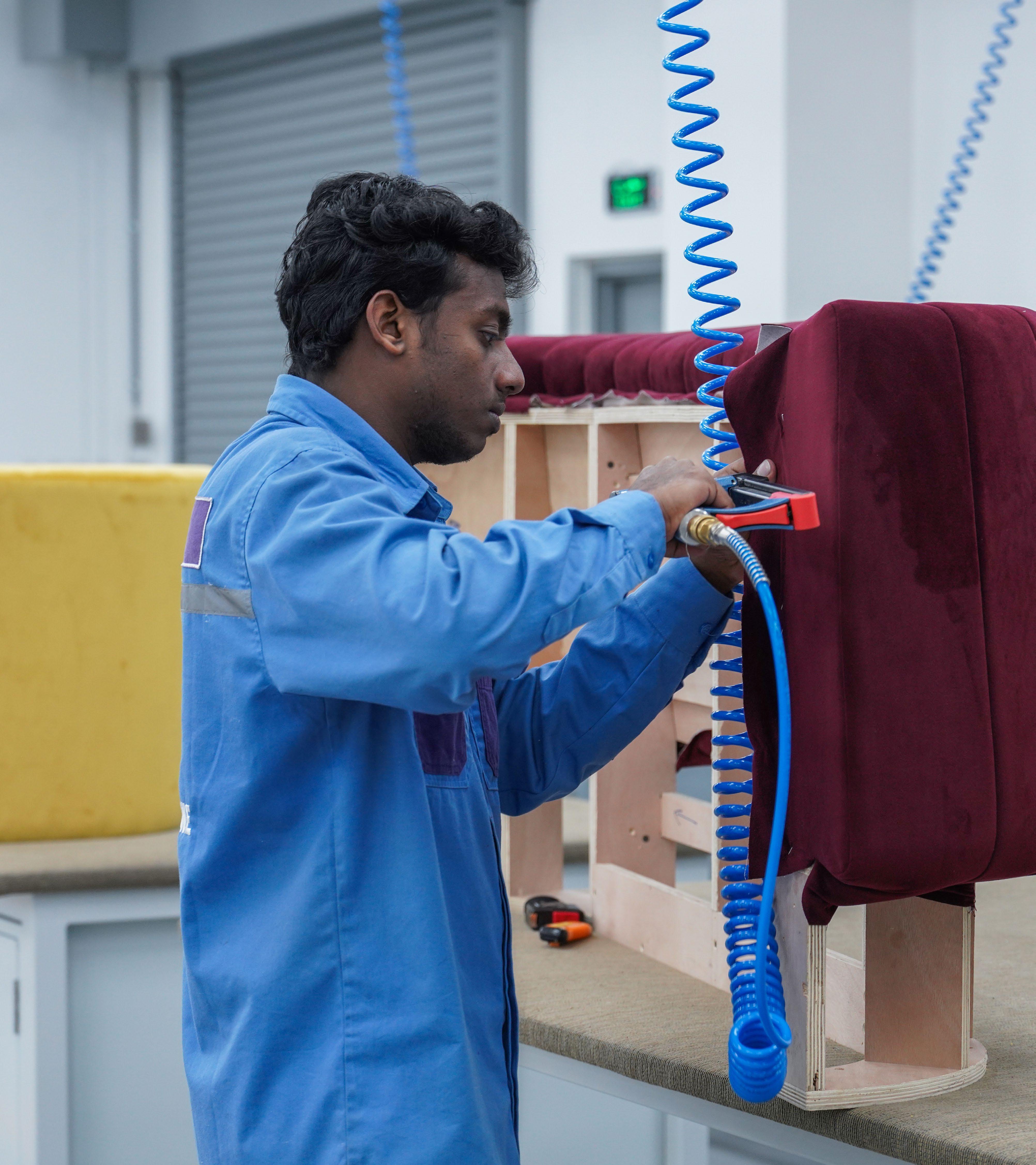 • We work with a wide range of foams, fabrics and leathers.