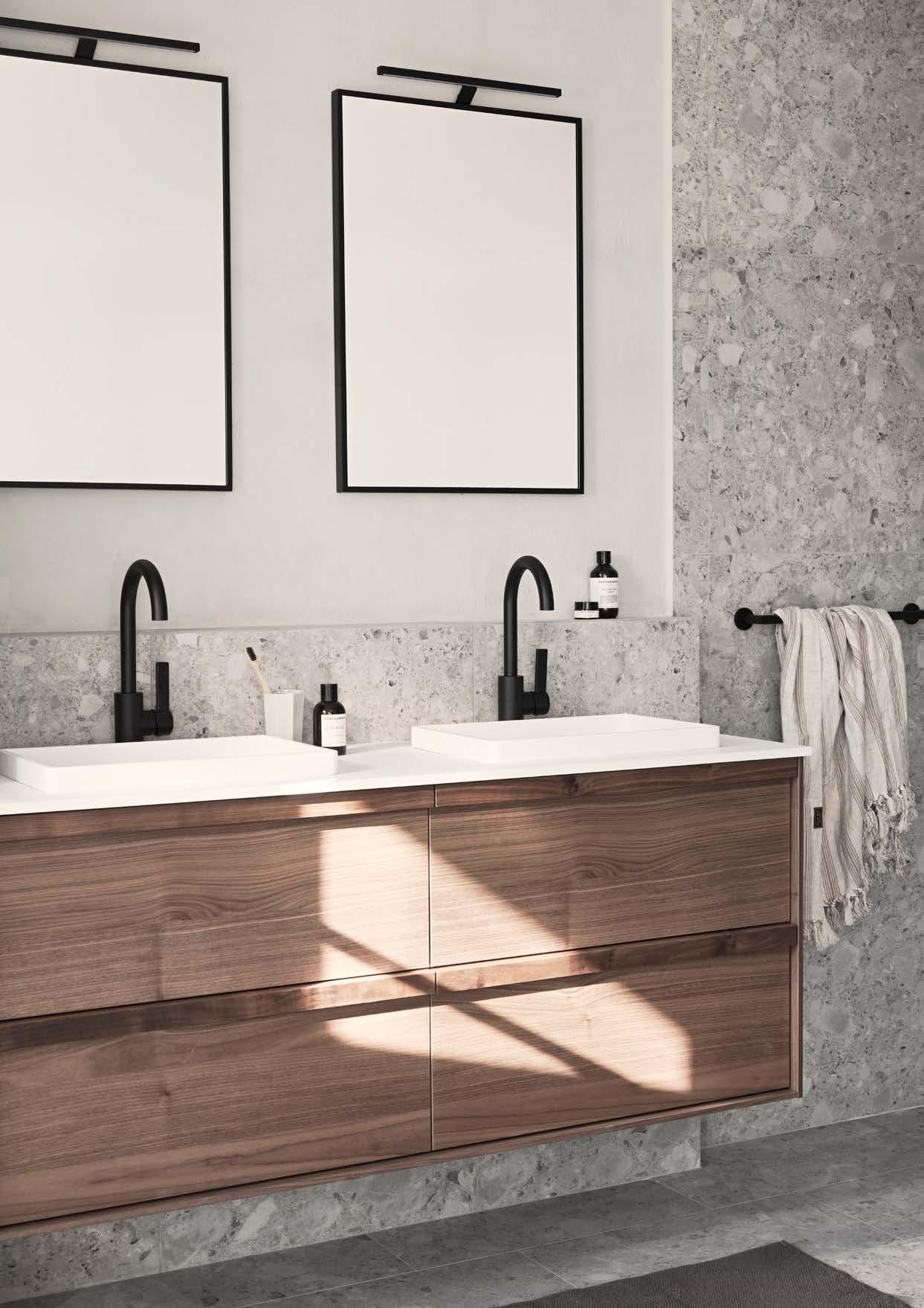 STOMMAR OCH LUCKOR FÖR RENGÖRING REKOMMENDERAR VI ATT MAN ANVÄNDER EN FUKTIG BOMULLSTRASA MED ETT MILT RENGÖRINGSMEDEL SOM T. EX. MILT DISKMEDEL ELLER SÅPA. UNDVIK ATT ANVÄNDA STARKA RENGÖRINGSMEDEL SOM KAN SKADA PRODUKTEN. BADRUMSMÖBLER UTSÄTTS GIVETVIS FÖR MER FUKT ÄN MÖBLER ÖVRIGA RUM I HEMMET. VÅRA BADRUMSMÖBLER ÄR ANPASSADE FÖR BADRUMMET OCH GJORDA I FUKTTÅLIGA MATERIAL. MEN ÄVEN OM VÅRA BADRUMSMÖBLER ÄR DET, SKA DE INTE UTSÄTTAS FÖR VATTEN ELLER EXTREMT HÖG LUFTFUKTIGHET. TÄNK PÅ ATT SE TILL ATT VENTILATIONEN ÄR GOD OCH ATT MÖBLERNA PLACERAS PÅ ETT SÅDANT AVSTÅND FRÅN BADKAR/DUSCH ATT VATTEN INTE KAN SKVÄTTA DIREKT PÅ MÖBELN. BLÖTA FLÄCKAR, ÄVEN VANLIGT VATTEN, TORKAS UPP SÅ SNART SOM MÖJLIGT. VÅRDA DIN BADRUMSMÖBEL MED OMSORG, DÅ KOMMER DEN ATT SKÄNKA TRIVSEL MÅNGA ÅR FRAMÖVER.